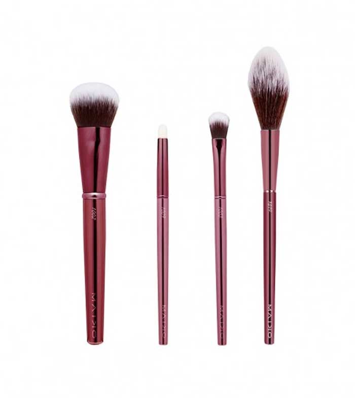Es enthält einen Foundation-Pinsel, einen Concealer-Pinsel, einen Puder-Rouge- und Bronzer-Pinsel sowie einen Pinsel mit Stiftspitze, der sich perfekt zum Aufbrechen eines Eyeliners mit Schatten oder zum Schminken des unteren Augenlids eignet.