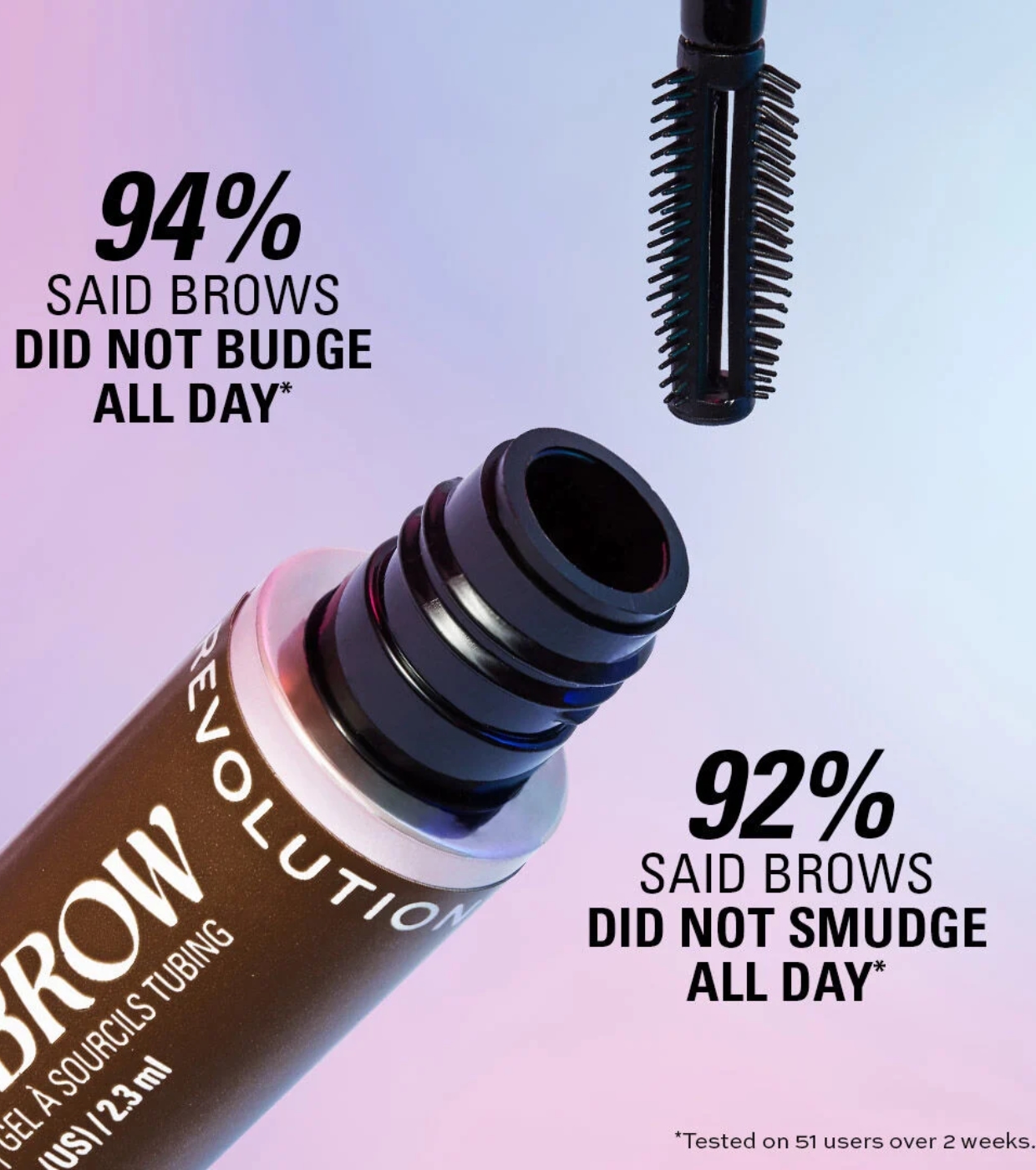 Mit dem Wrap Brow Augenbrauengel von Revolution können Sie Ihre Augenbrauen in einem Schritt definieren, fixieren und färben. Das innovative Gel mit Tubing-Technologie umhüllt jedes einzelne Haar und sorgt so für einen dichteren, definierteren und natürlicheren 3D-Effekt.
