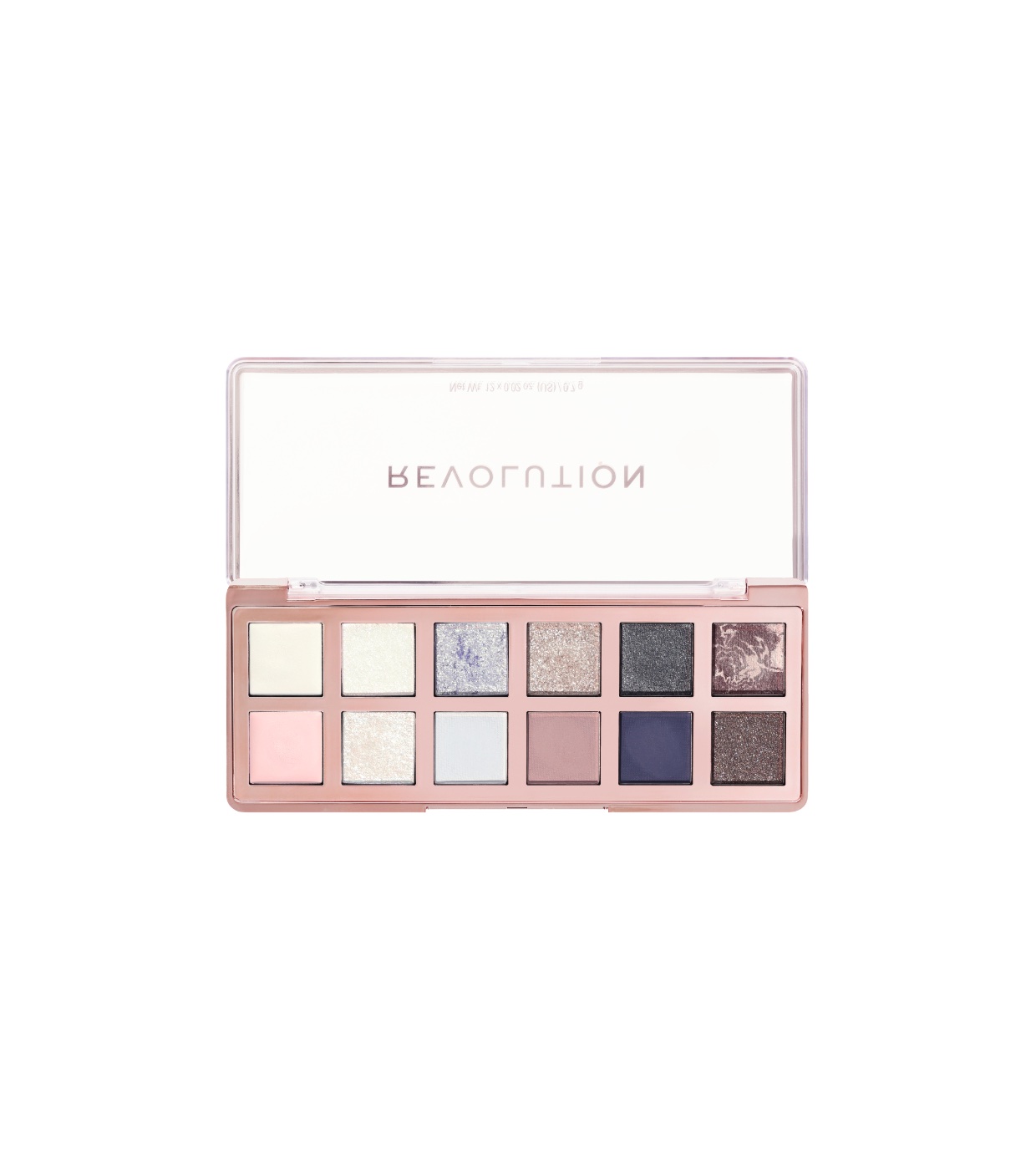 Entdecken Sie die Magie der Palette The Celestial Icon von Makeup Revolution mit zwölf faszinierenden Lidschatten in einer Reihe ätherischer Farbtöne.