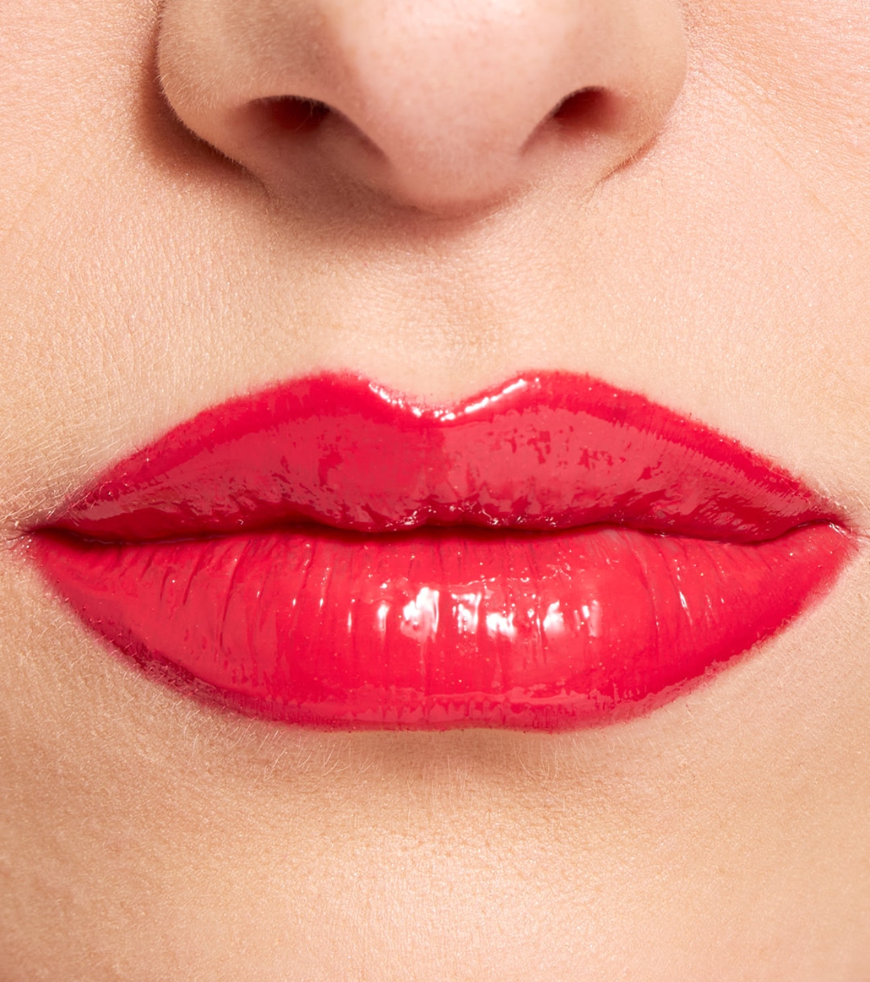 - Das Pigment eines Lippenstifts wird mit einem superglänzenden Glanz kombiniert.