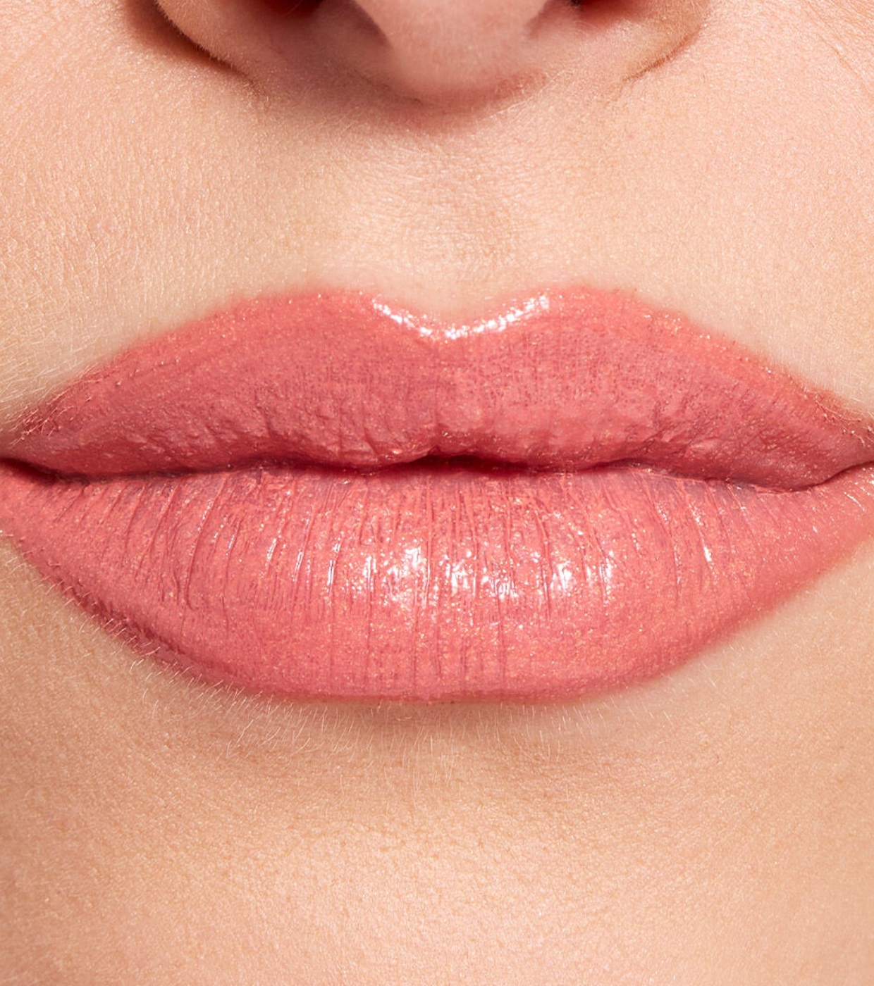 • Das Pigment eines Lippenstifts wird mit einem superglänzenden Glanz kombiniert.