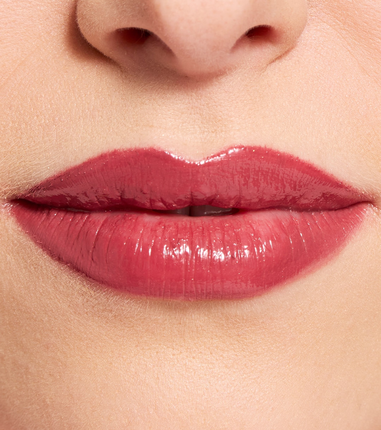 • Das Pigment eines Lippenstifts wird mit einem superglänzenden Glanz kombiniert.