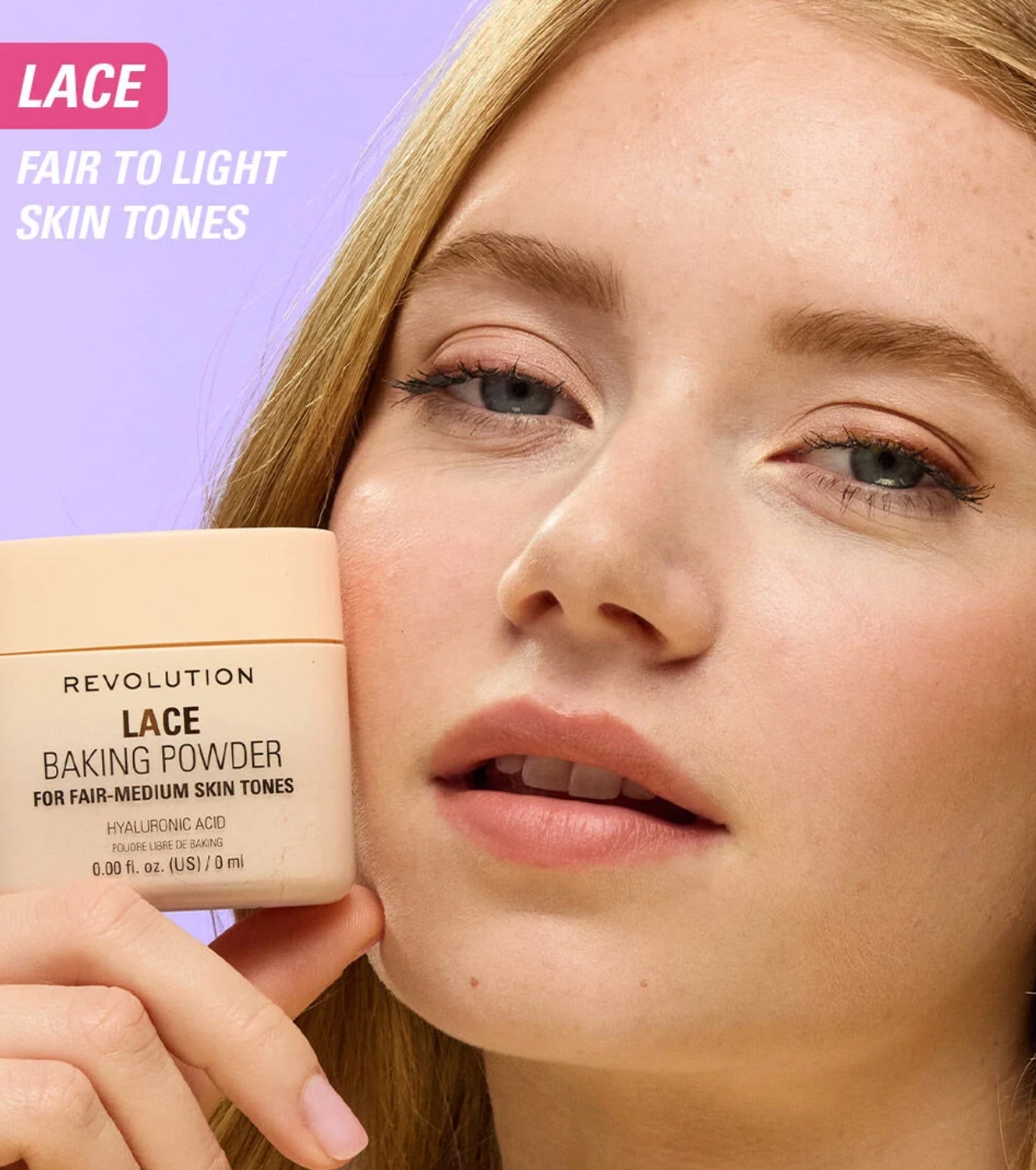 Revolution Loose Baking Powder ist das Geheimnis für ein langanhaltendes, glanzfreies Make-up mit Weichzeichner-Effekt.