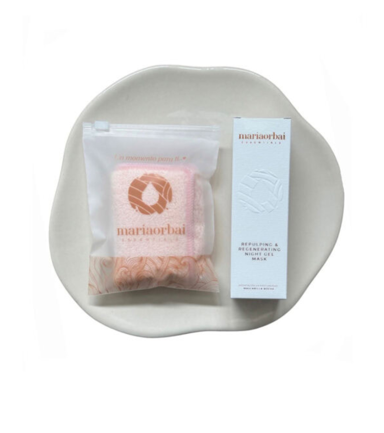Entdecken Sie die perfekte Maske zum Verwöhnen Ihrer Haut: die Maria Orbai Plumping and Regenerating Facial Mask mit einer veganen, geltexturierten, nicht komedogenen Formel, angereichert mit Hyaluronsäure, Vitamin B5 und Papain.