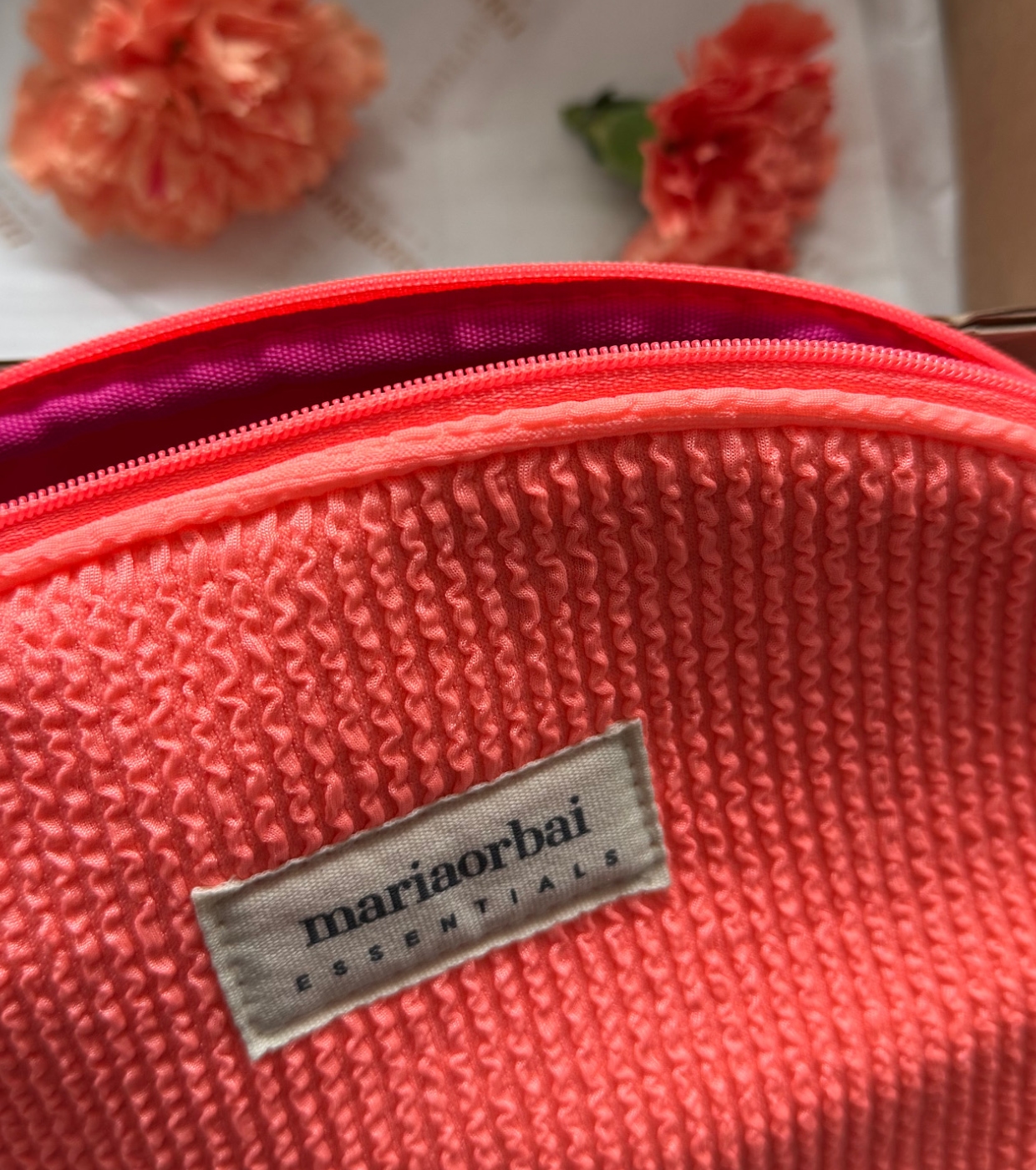 Entdecken Sie die Kulturtasche Summer Essentials von Maria Orbai , perfekt für Ihren Alltag: praktisch, leicht und mit einem exklusiven Stoff, der sie zu einem einzigartigen Accessoire macht.