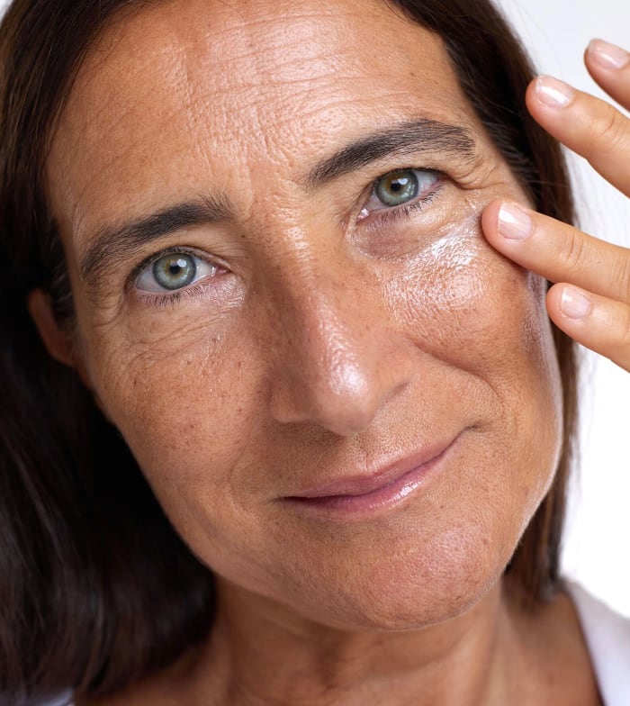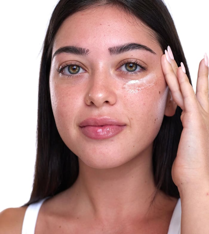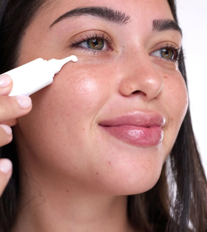 Ich empfehle, bei vollkommen sauberer Haut eine kleine Menge in der Größe eines Reiskorns (zwei Kleckse, wenn Ihre Augenringe sehr trocken sind, ein Klecks, wenn sich Ihre Augenringe nicht so dehydriert anfühlen) auf die Augenkontur aufzutragen und sanft und ohne Druck einzumassieren.