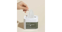 Öffnen Sie den Schutzdeckel und entnehmen Sie mithilfe des Miniclips im Deckel des Maskenbehälters eine Maske aus dem Behälter.