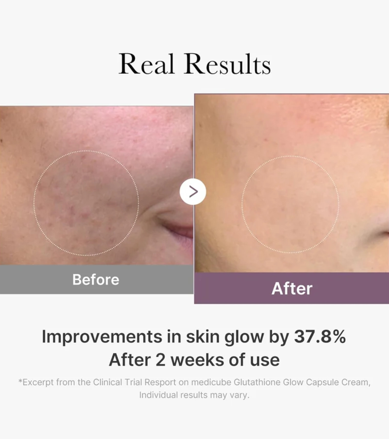 Erzielen Sie strahlendere, hydratisierte und verjüngte Haut mit dieser aufhellenden Creme Glutathione Glow Capsule von Medicube .