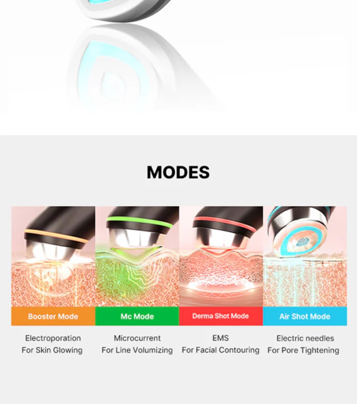 - Mikroströme (MC): Stimulieren die Gesichtsmuskeln, um sie zu straffen und ihre Elastizität zu verbessern.