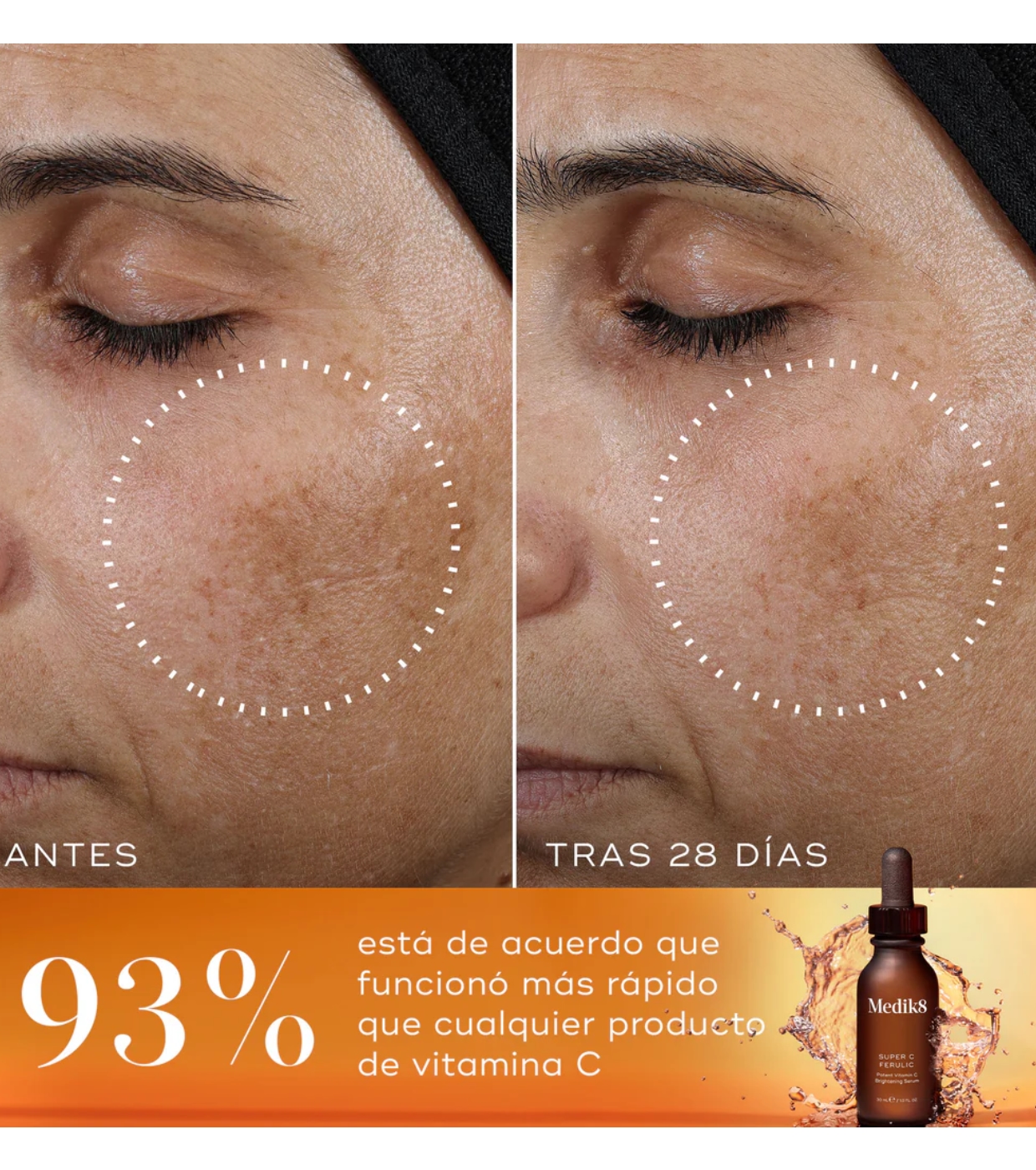 Super C Ferulic™ von Medik8 ist das stärkste Vitamin-C-Aufhellungsserum der Marke, das entwickelt wurde, um die 4 Anzeichen fortgeschrittener Sonnenalterung effektiv zu bekämpfen: Falten, dunkle Flecken, Verlust der Festigkeit und ungleichmäßiger Hautton*.