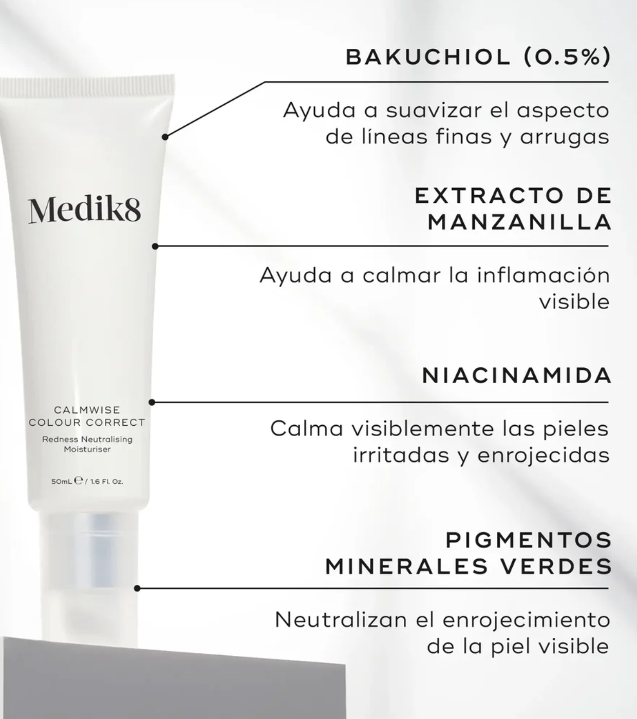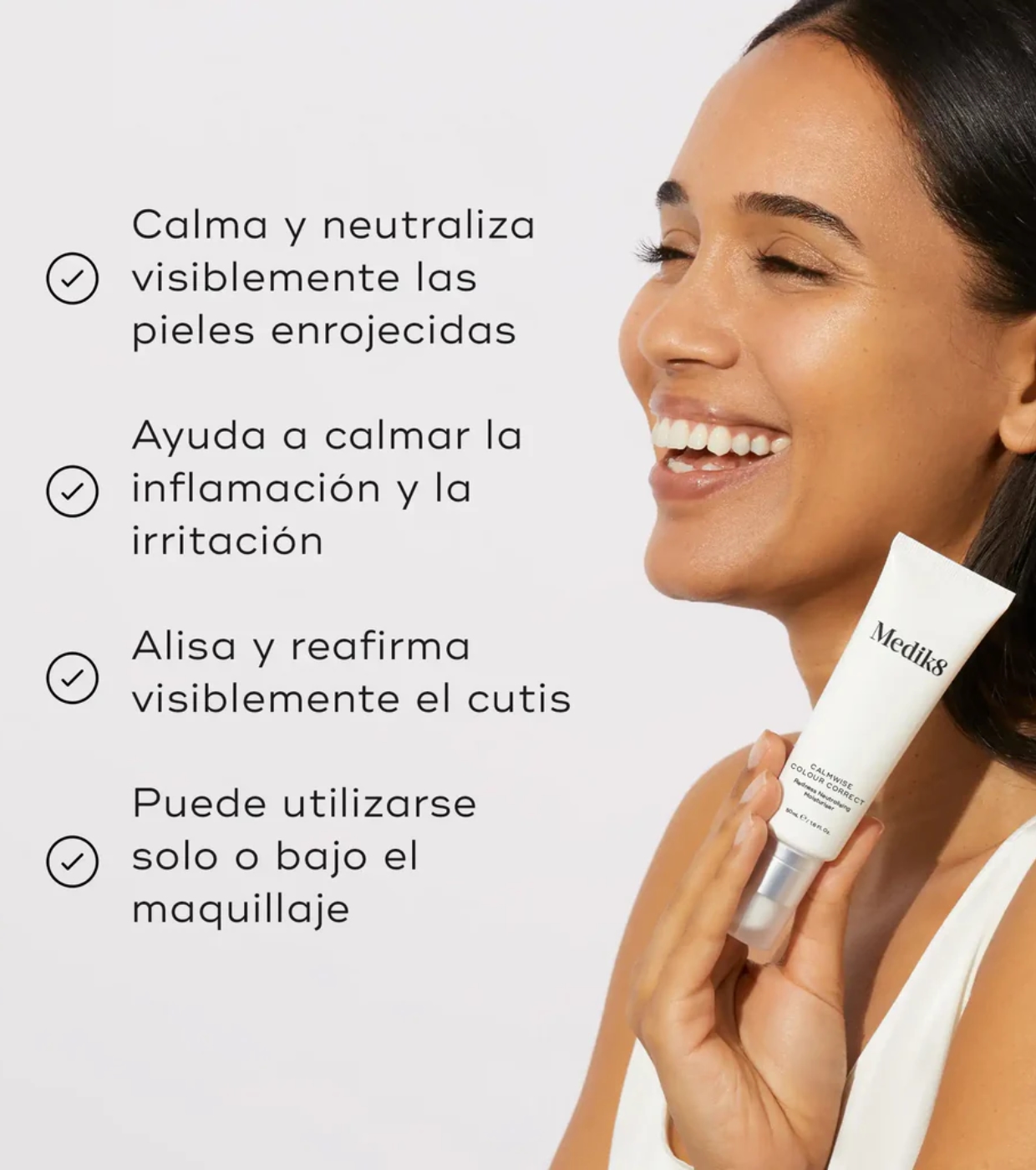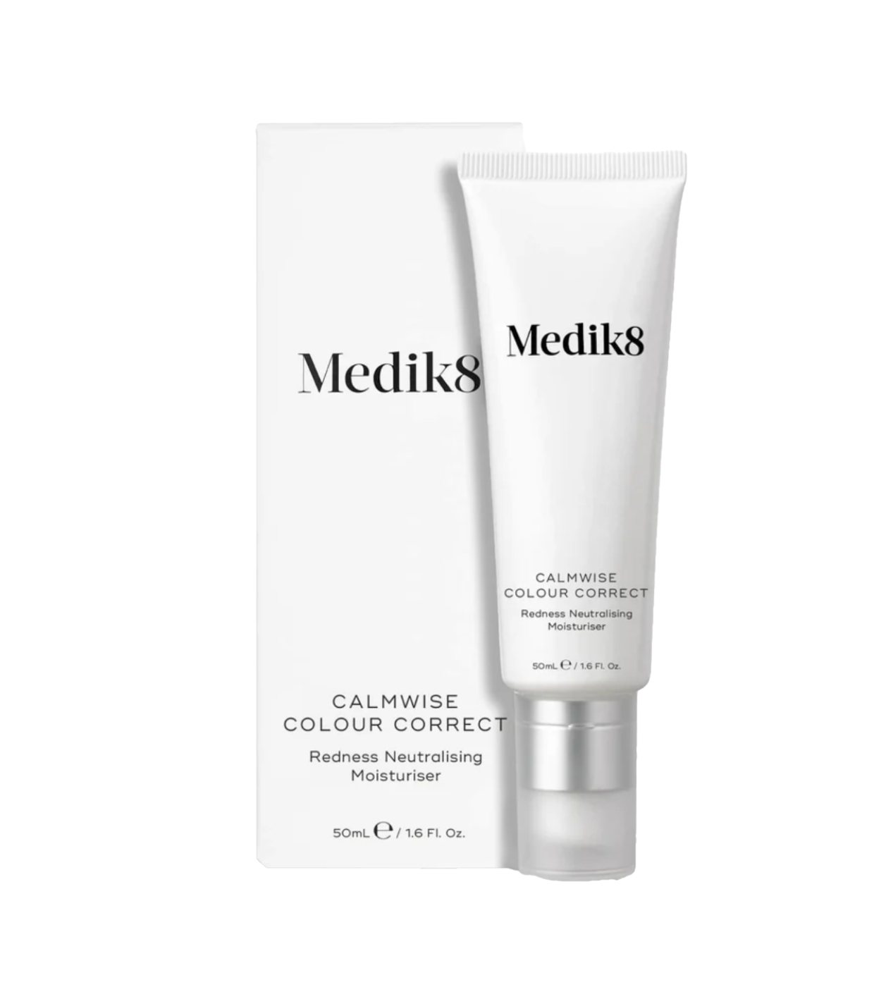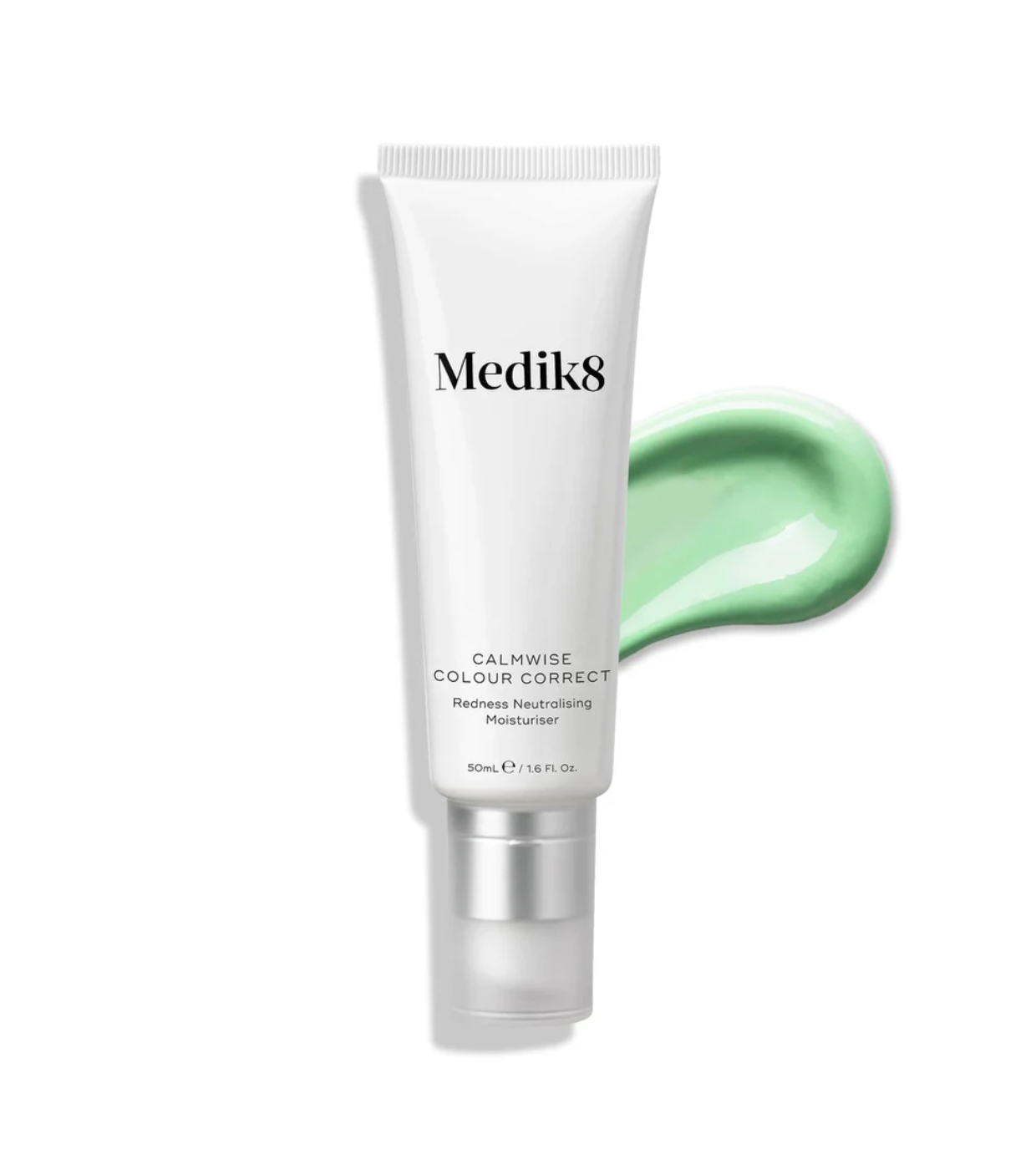 Redness Neutralizing Cream Calmwise Colour Correct von Medik8 ist eine Feuchtigkeitscreme, die speziell für Haut mit Rosacea, Empfindlichkeit oder Neigung zu Rötungen entwickelt wurde.