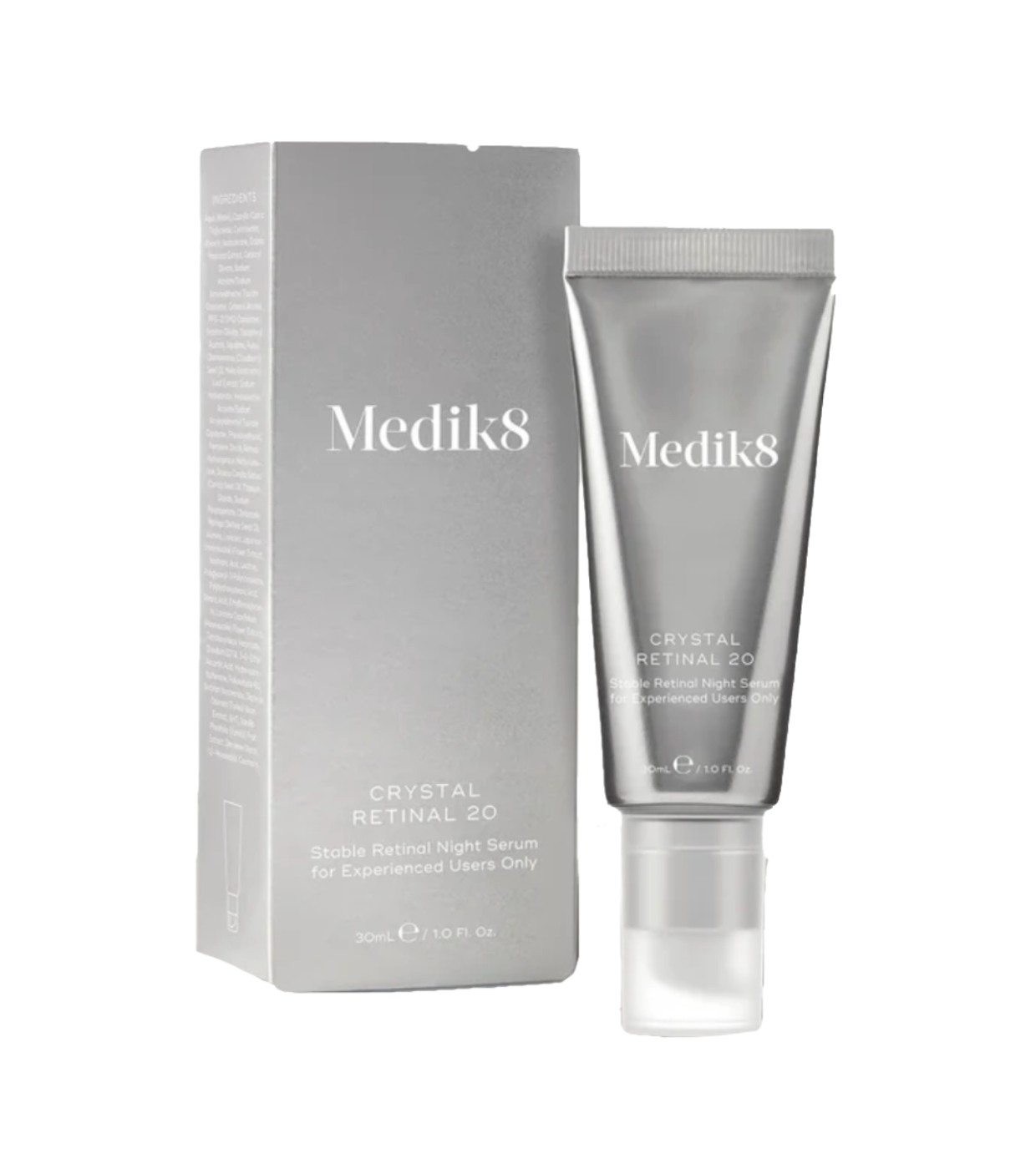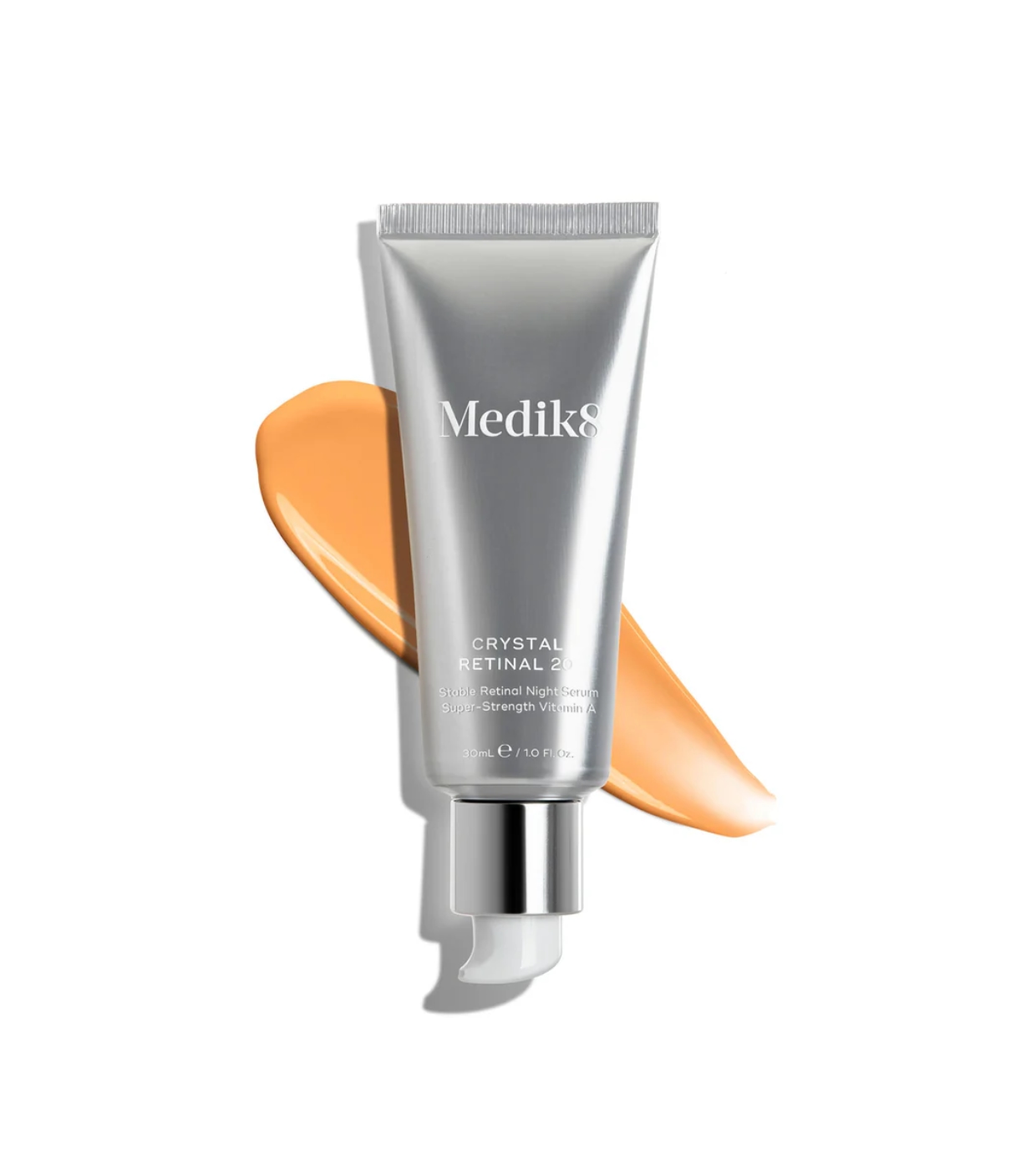 Das Anti-Aging-Nachtgesichtsserum mit Retinal und Vitamin A Crystal Retinal 20 von Medik8 ist ein hochwirksames Nachtserum mit 0,2 % eingekapseltem Retinaldehyd, einem Derivat von Vitamin A, das bis zu 11-mal schneller wirkt als herkömmliche Produkte Retinol.