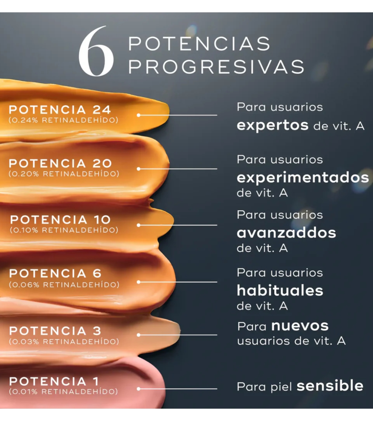 Dieses Produkt wurde für Benutzer mit Erfahrung in der Anwendung von Retinoiden entwickelt, da es eine fortgeschrittene Hauterneuerung ermöglicht, Falten, Mimikfalten und Hautunreinheiten sichtbar reduziert und die Festigkeit und Leuchtkraft des Gesichts verbessert.