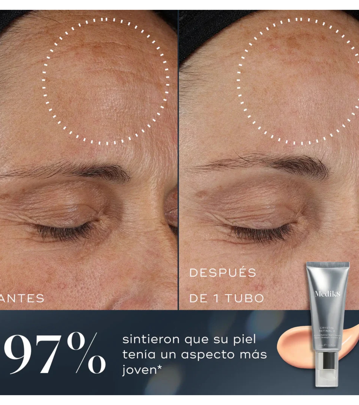 Darüber hinaus bietet Medik8 eine Reihe progressiver Konzentrationen von Crystal Retinal, sodass Benutzer die Behandlung an die Bedürfnisse ihrer Haut anpassen und ihre Hautpflegeroutine schrittweise weiterentwickeln können.