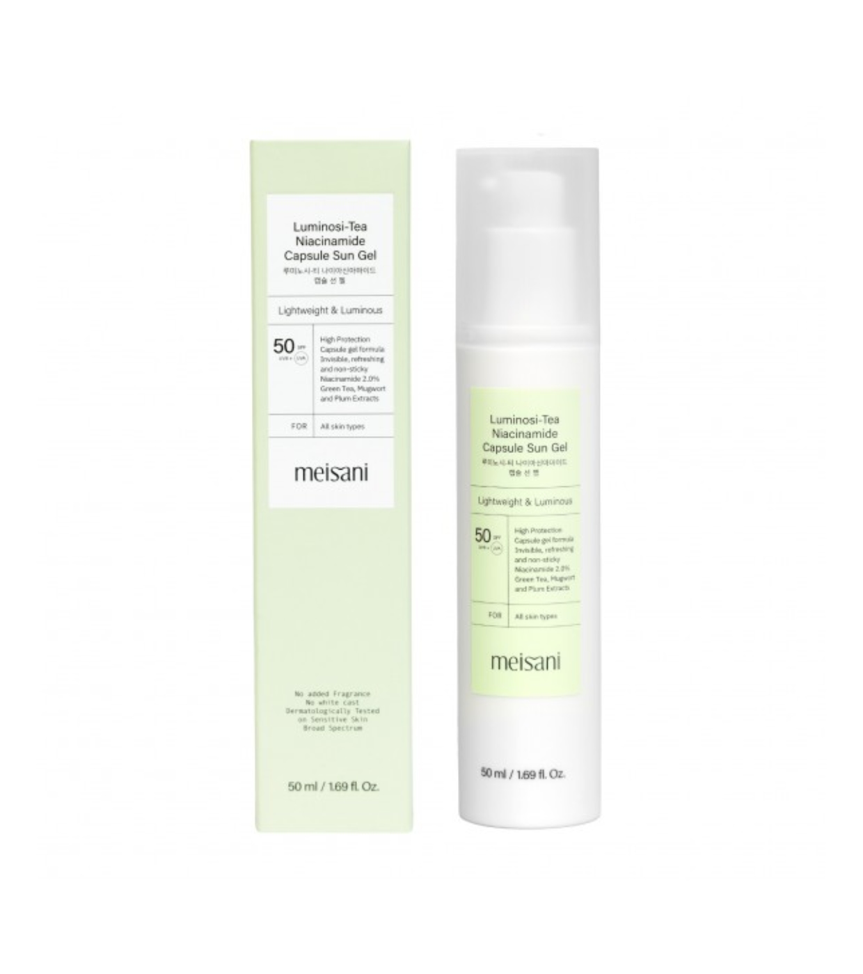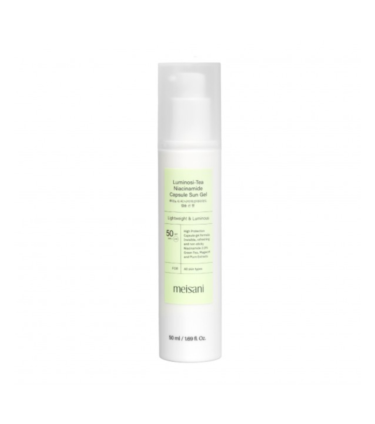 Luminosi-Tea Niacinamide Capsule Sun Gel SPF 50 ist ein ultraleichtes Gel-Sonnenschutzmittel, das einen hohen Breitbandschutz (UVA/UVB) und ein strahlendes, feuchtigkeitsspendendes und angenehmes Finish bietet.