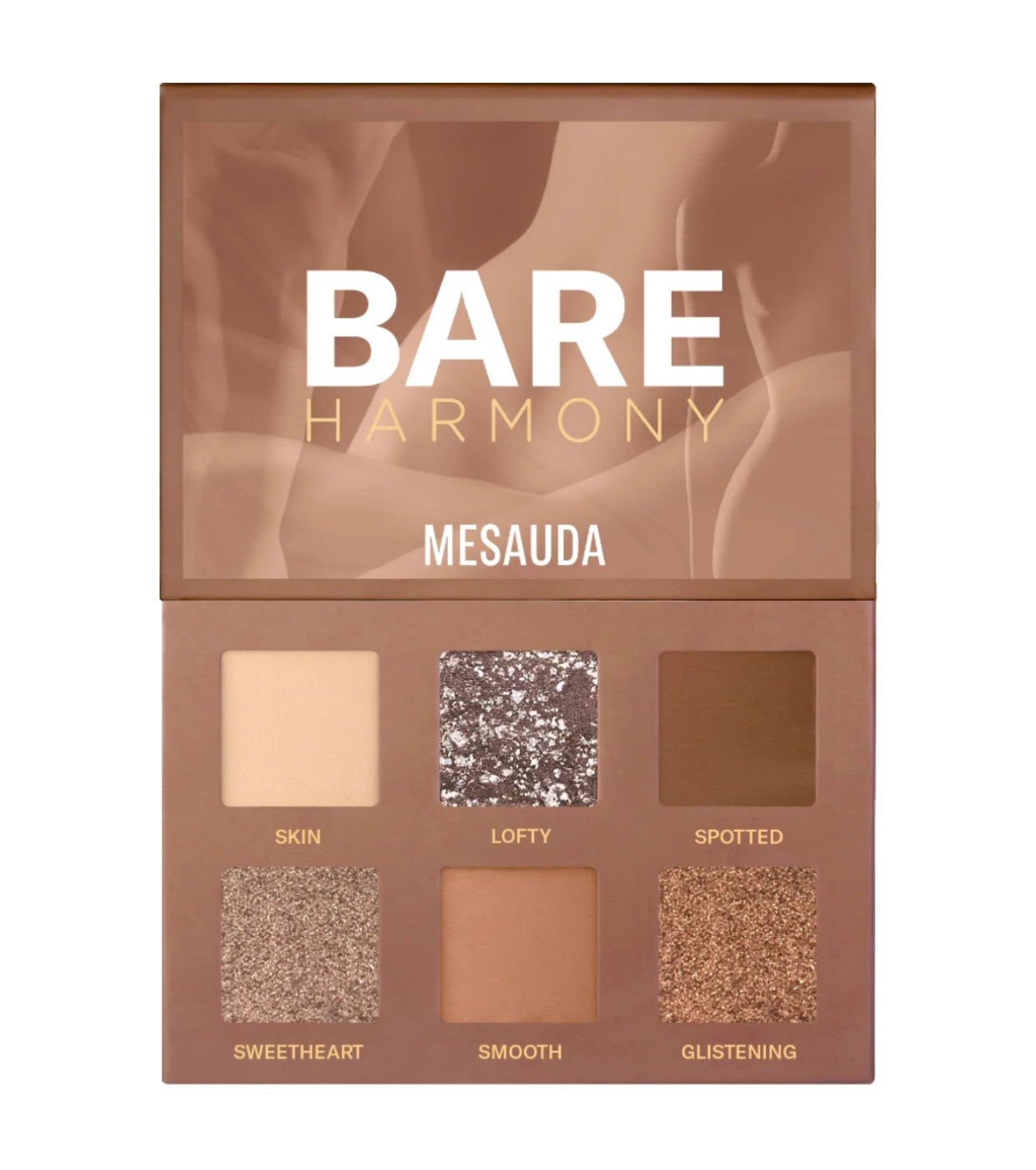 Die Lidschattenpalette Bare Harmony 3.0 von Mesauda bietet klassische und zeitlose Nude-Töne, die sich ideal für die Kreation eleganter, vielseitiger und stets modischer Make-up-Looks eignen.
