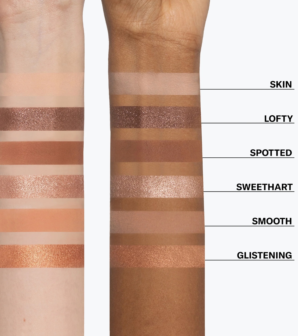 Die innovativen und ultraweichen Texturen vereinen matte, metallische und leuchtende Finishes und ermöglichen es Ihnen, Looks im Nude-Bereich zu kreieren: von natürlichem und raffiniertem Make-up für den Alltag bis hin zu intensiveren und definierteren Varianten.