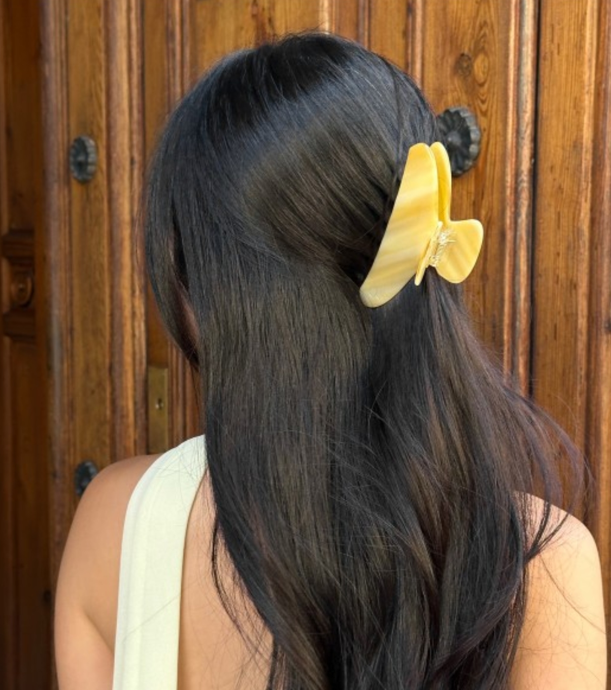 Aus Acetat gefertigt und mit einer großen Größe ausgestattet, ermöglicht sie es, auch große Haarvolumen zu halten, ohne die Haarfasern zu brechen oder zu beschädigen, und bietet so den ganzen Tag über Komfort und Stabilität.