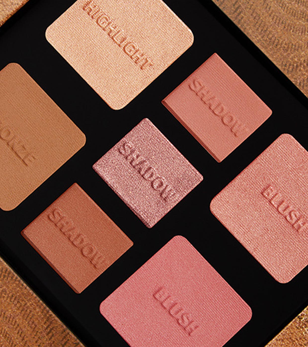 Schattierungen, Rouge, Textmarker und Bronzerpulver, modulierbar und mit Leichtigkeit zu mischen und aufzutragen.