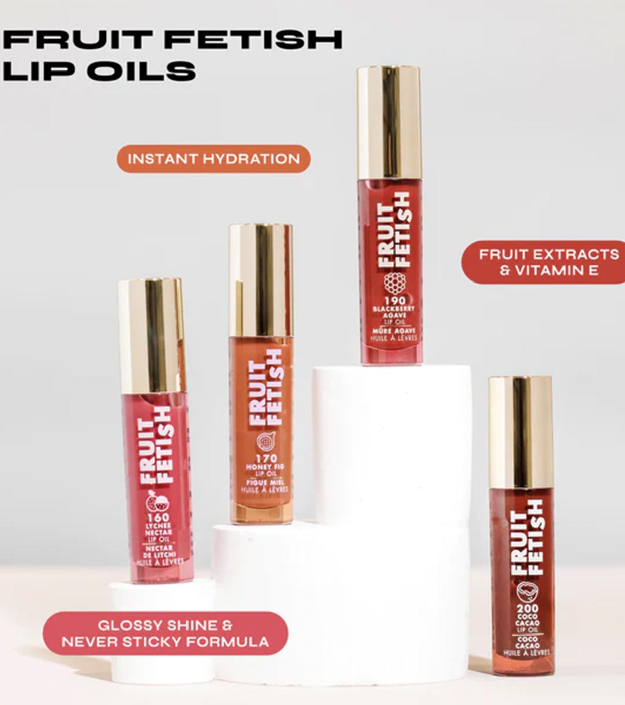 Die Lippenöle von Fruit Fetish wurden mit Fruchtextrakten und Vitamin E formuliert, um die Lippen zu nähren und mit Feuchtigkeit zu versorgen und ihnen ein äußerst angenehmes Gefühl zu verleihen.