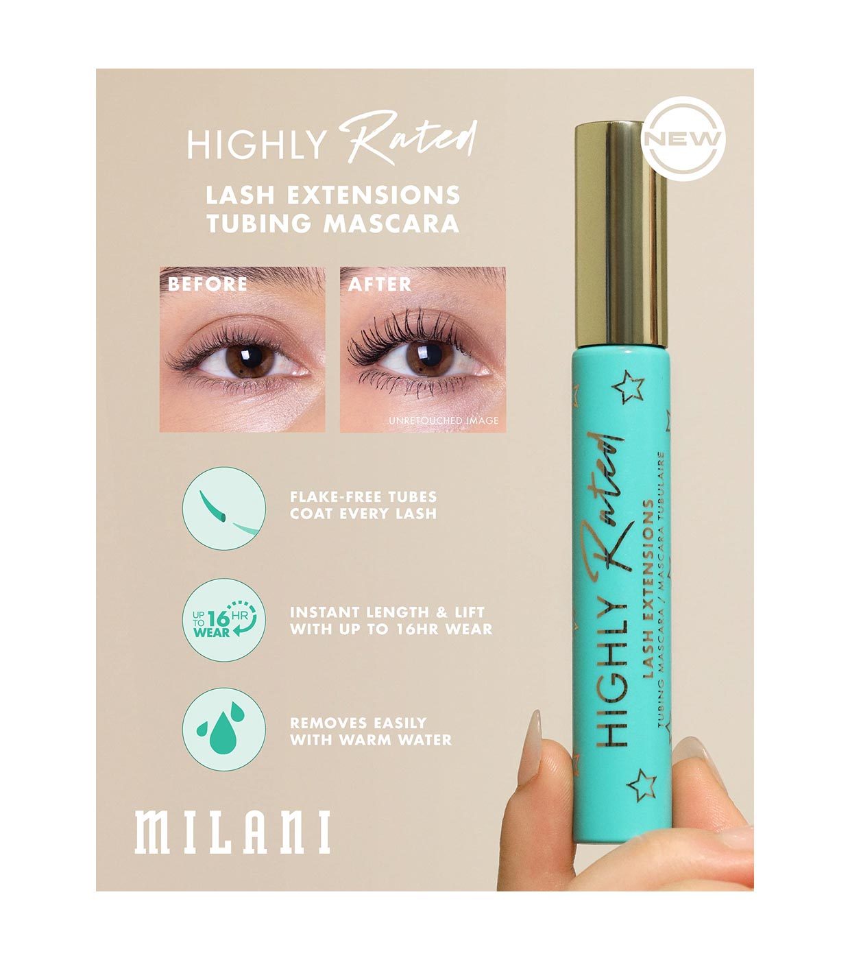 Milani Highly Rated Lash Extensions Tubing Mascara verlängert und hebt die Wimpern dramatisch für den falschen Wimpern-Look.