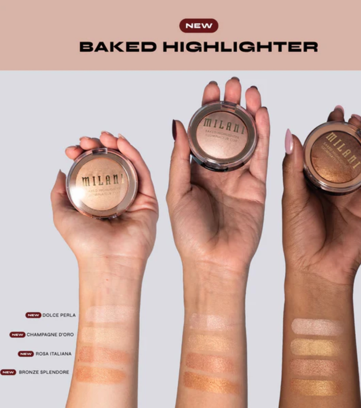 Mit dem Baked Highlighter von Milani erzielen Sie einen eleganten und realistischen Glanz, ohne grobe Partikel oder einen künstlichen Effekt.