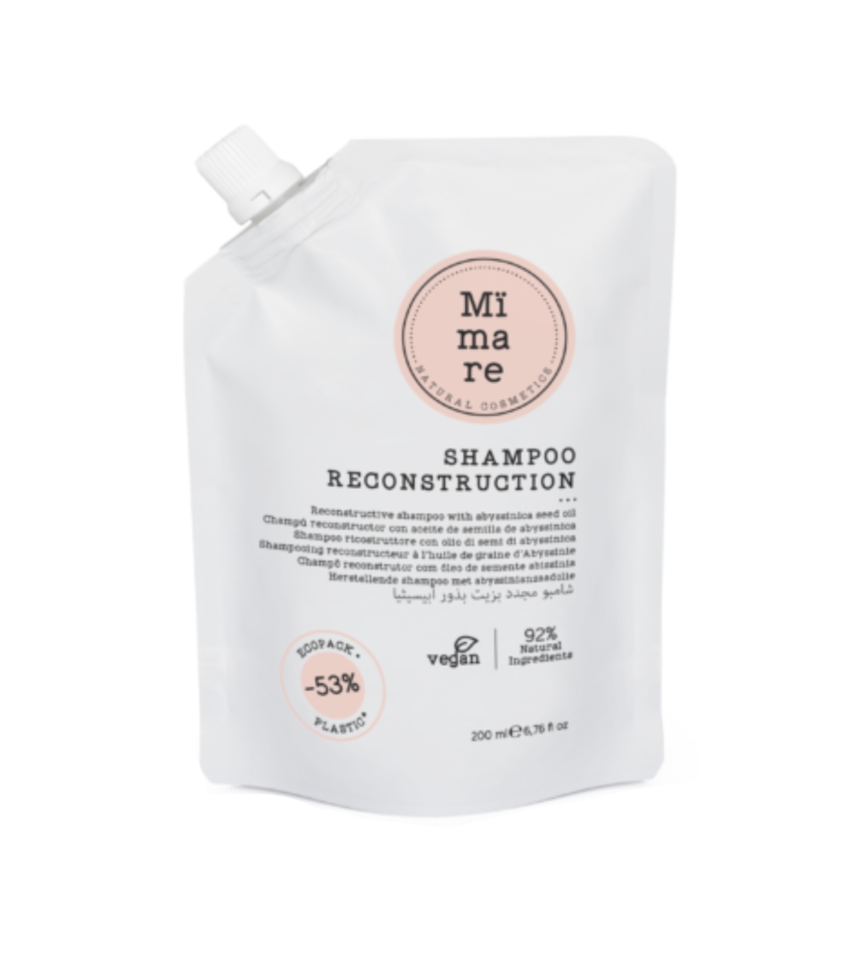 Das Mimare Abyssinica Seed Oil Reconstructing Shampoo wurde entwickelt, um geschädigtes, trockenes oder krauses Haar zu rekonstruieren, zu pflegen und zu reparieren.