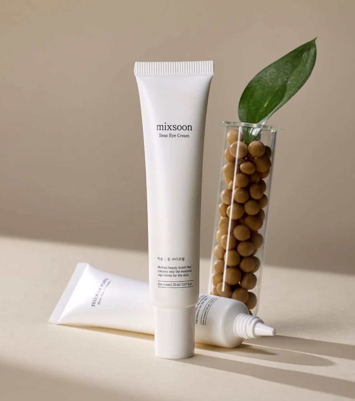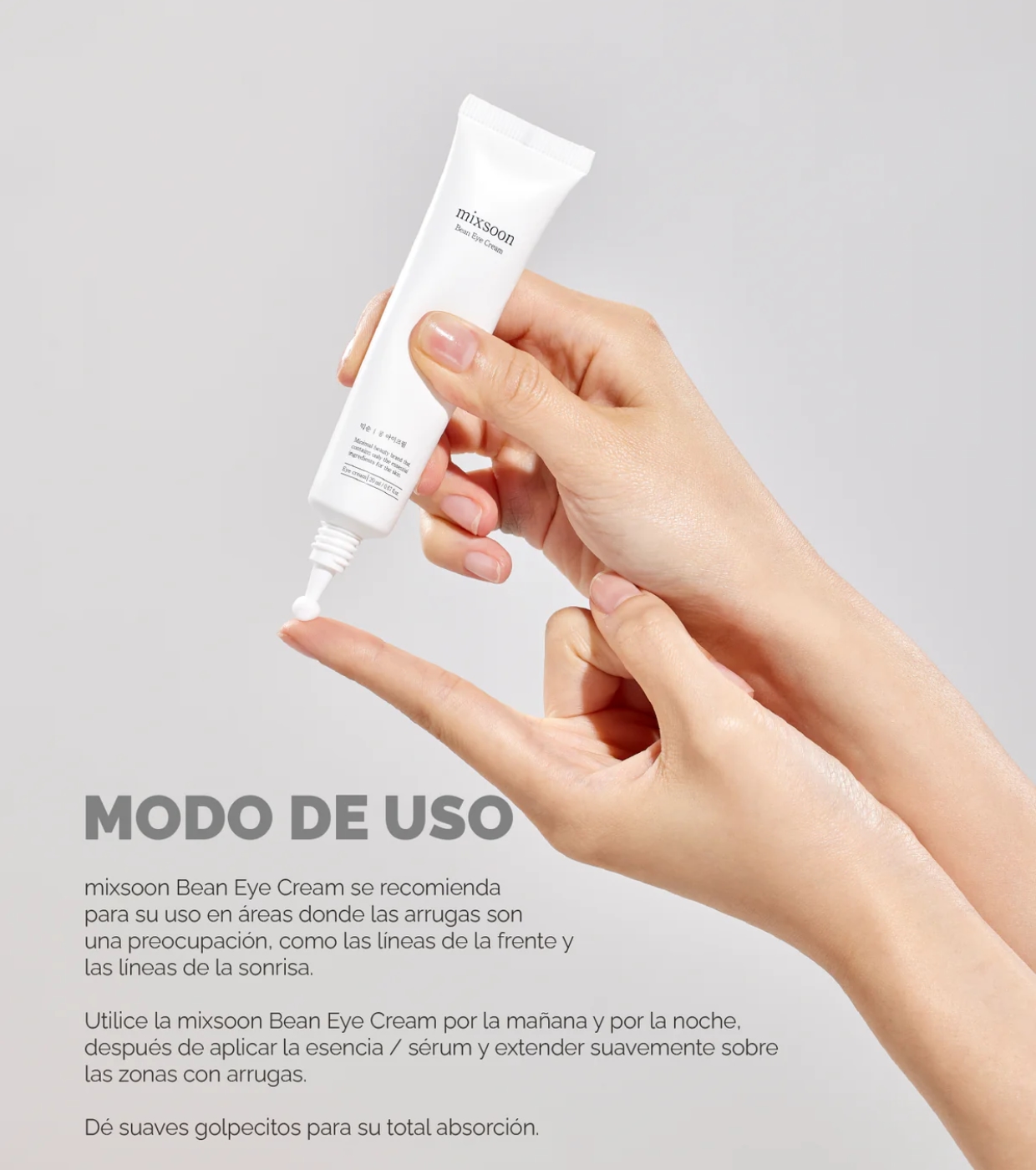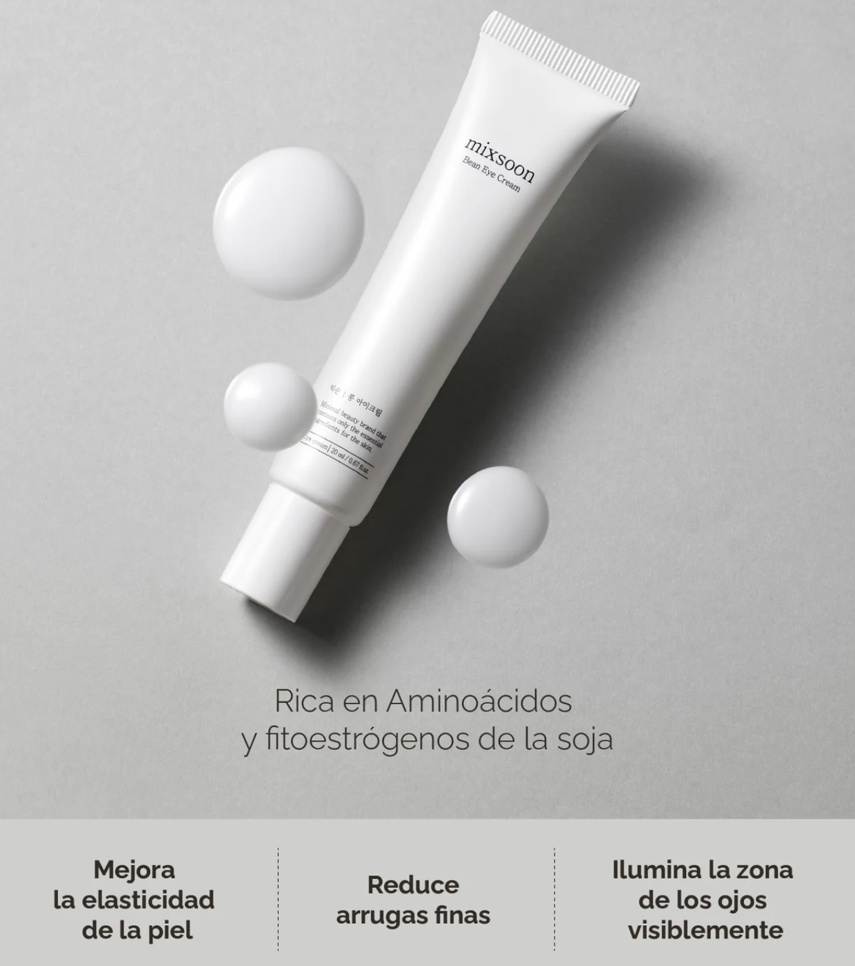 Mixsoon Bean Eye Cream ist ein feuchtigkeitsspendendes und pflegendes Augenpflegeprodukt aus fermentierten Sojabohnen, Gerste, Birne und Granatapfel.