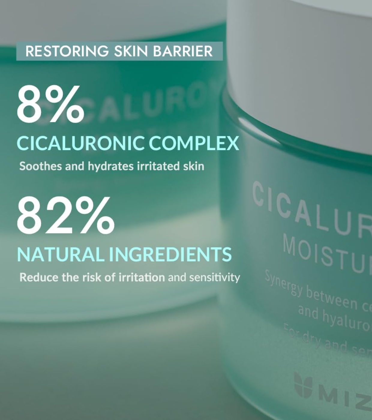 Mizon Cicaluronic Moisture Cream ist eine reichhaltige Feuchtigkeitscreme für trockene und empfindliche Haut, die intensive Pflege und Tiefenreparatur benötigt.