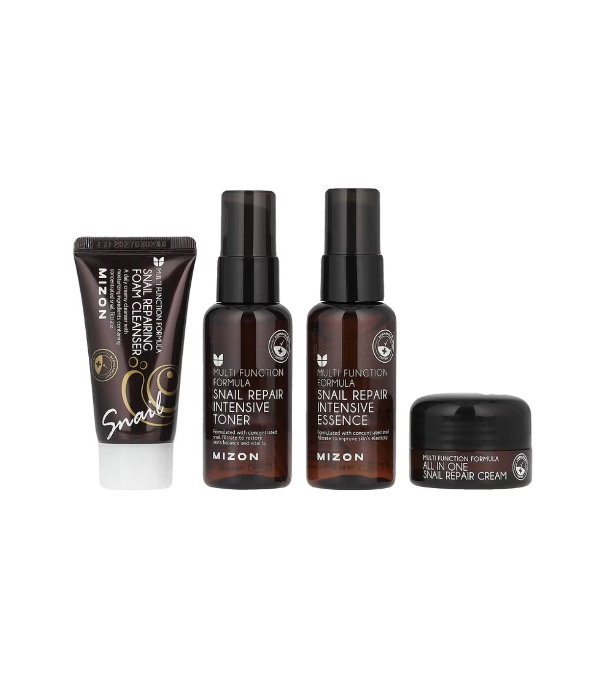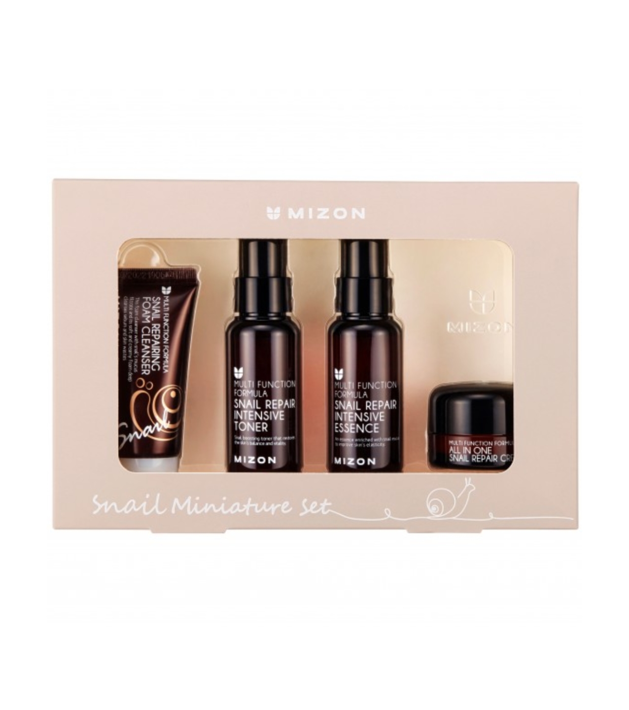 Entdecken Sie das Beste von Mizon mit dem Snail Miniature Set , einem Mini-Set, das die kultigsten Produkte der Snail-Linie vereint und sich ideal zum Ausprobieren der kompletten Routine oder zum Mitnehmen auf eine Reise eignet.