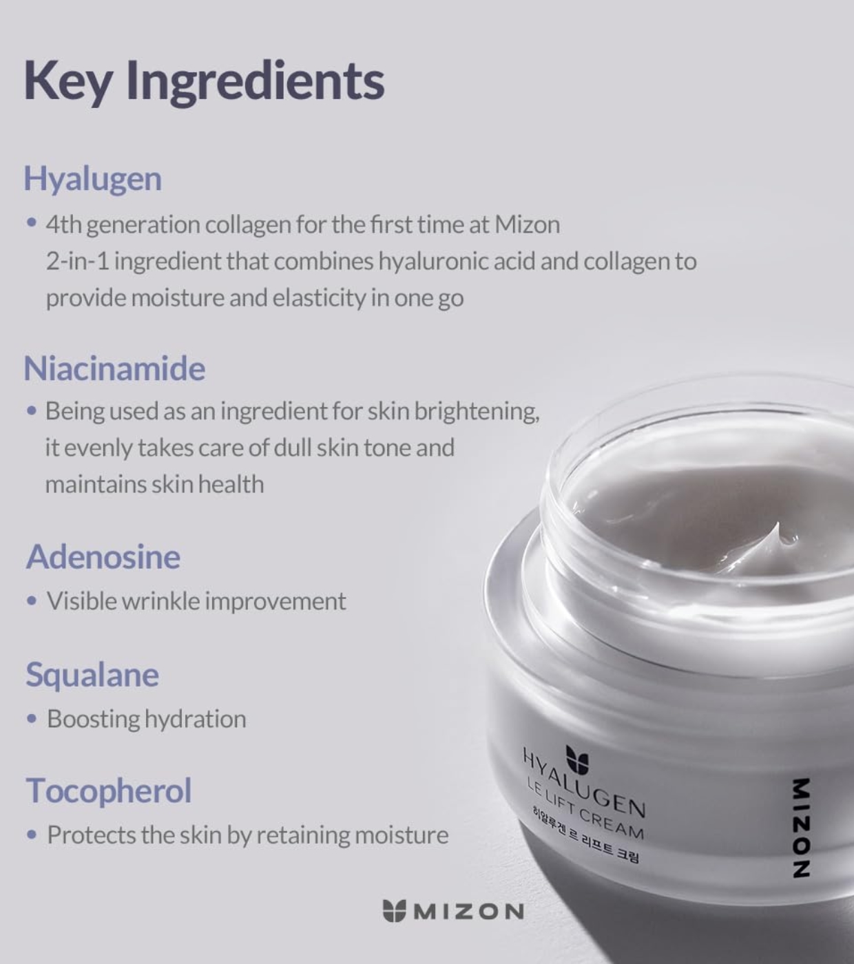 Die straffende Gesichtscreme Le Lift Cream von Mizon ist eine 2-in-1-Feuchtigkeitscreme, die tiefenwirksam Feuchtigkeit spendet und den Zeichen der Hautalterung entgegenwirkt – ideal für trockene, fahle oder zu Fältchen neigende Haut.