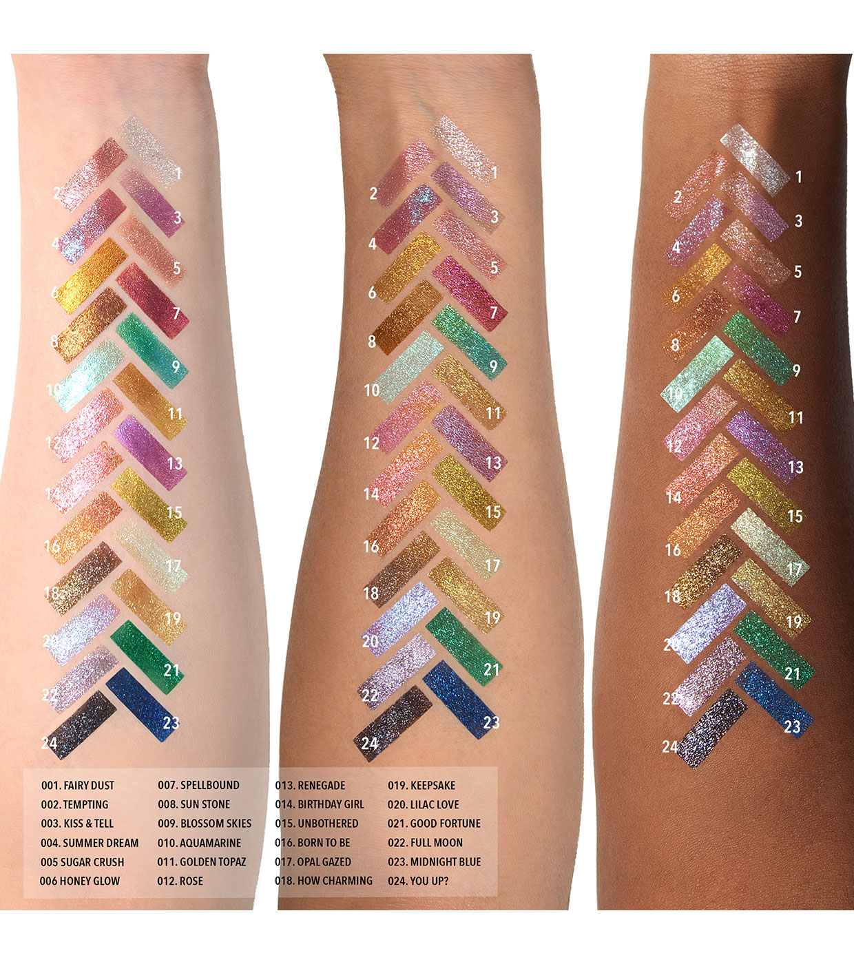 Sein mikrofeiner Glitzer sorgt für maximalen Glanz bei minimalem Ausfallen, während seine cremige, geschmeidige Formel sich perfekt verblenden lässt und für einen strahlenden, vielseitigen Look sorgt, der den ganzen Tag anhält.