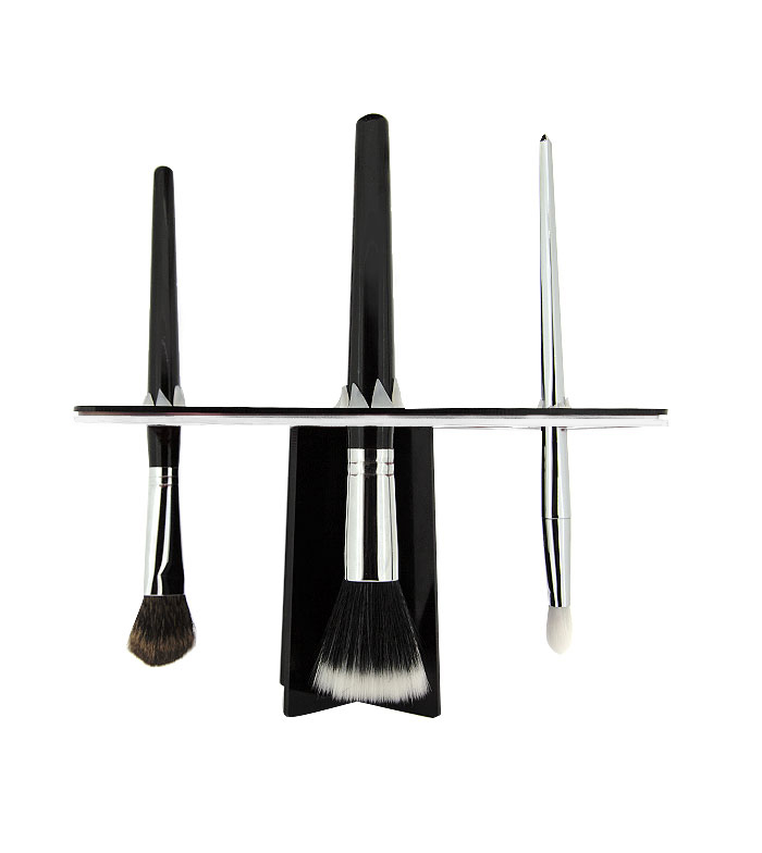 In jedem Loch befindet sich ein System von Sicherheitssilikonhaken, damit Ihre Bürsten gut befestigt sind. Verwenden Sie es mit einem glatten, glänzend schwarzen Finish, um die Pinsel immer griffbereit und in Ihrem Waschtisch gut organisiert zu halten.