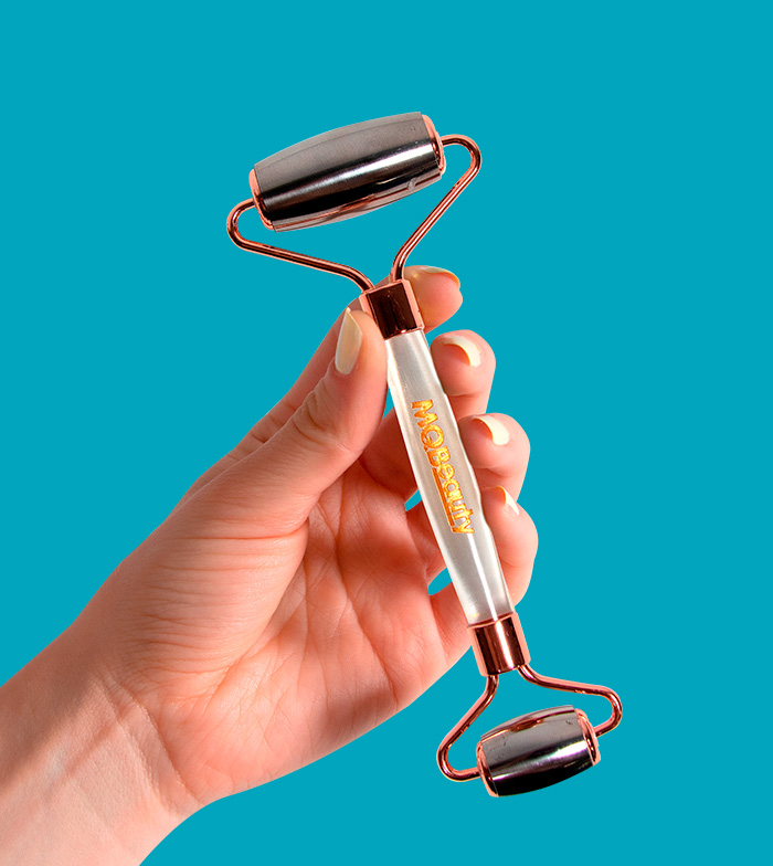 Genießen Sie eine energetisierende Massage mit der Edelstahl-Gesichtsrolle von MQBeauty.
