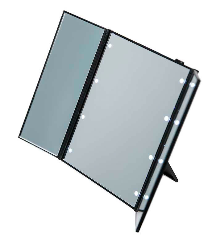 Mit diesem praktischen Spiegel können Sie überall etwas nachholen.