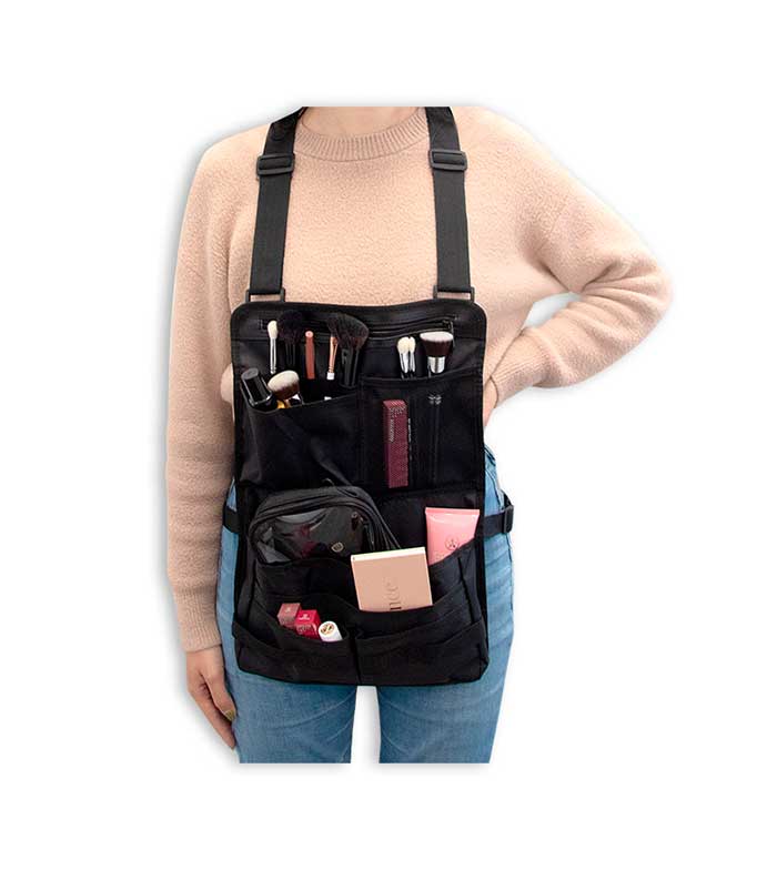 Diese Schürze enthält mehrere Fächer in verschiedenen Größen, um alle Arten von Produkten nach Ihren Bedürfnissen aufzubewahren: Bürsten, Pinzetten, Make-up, Make-up-Entferner usw.