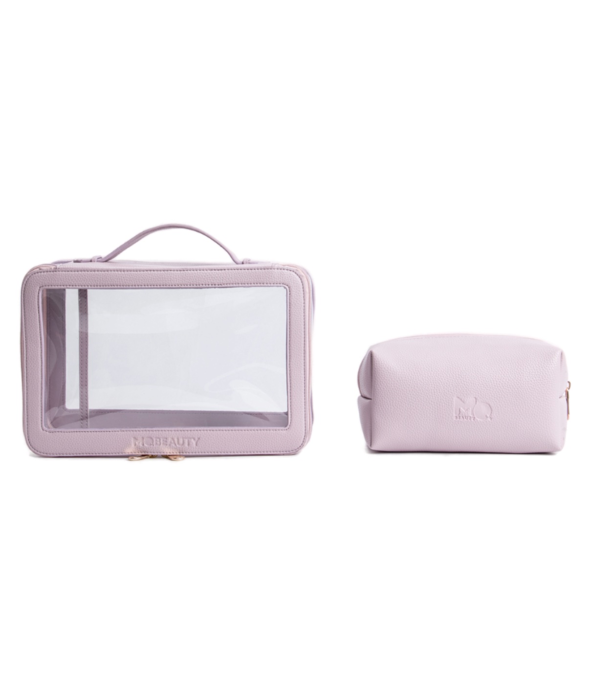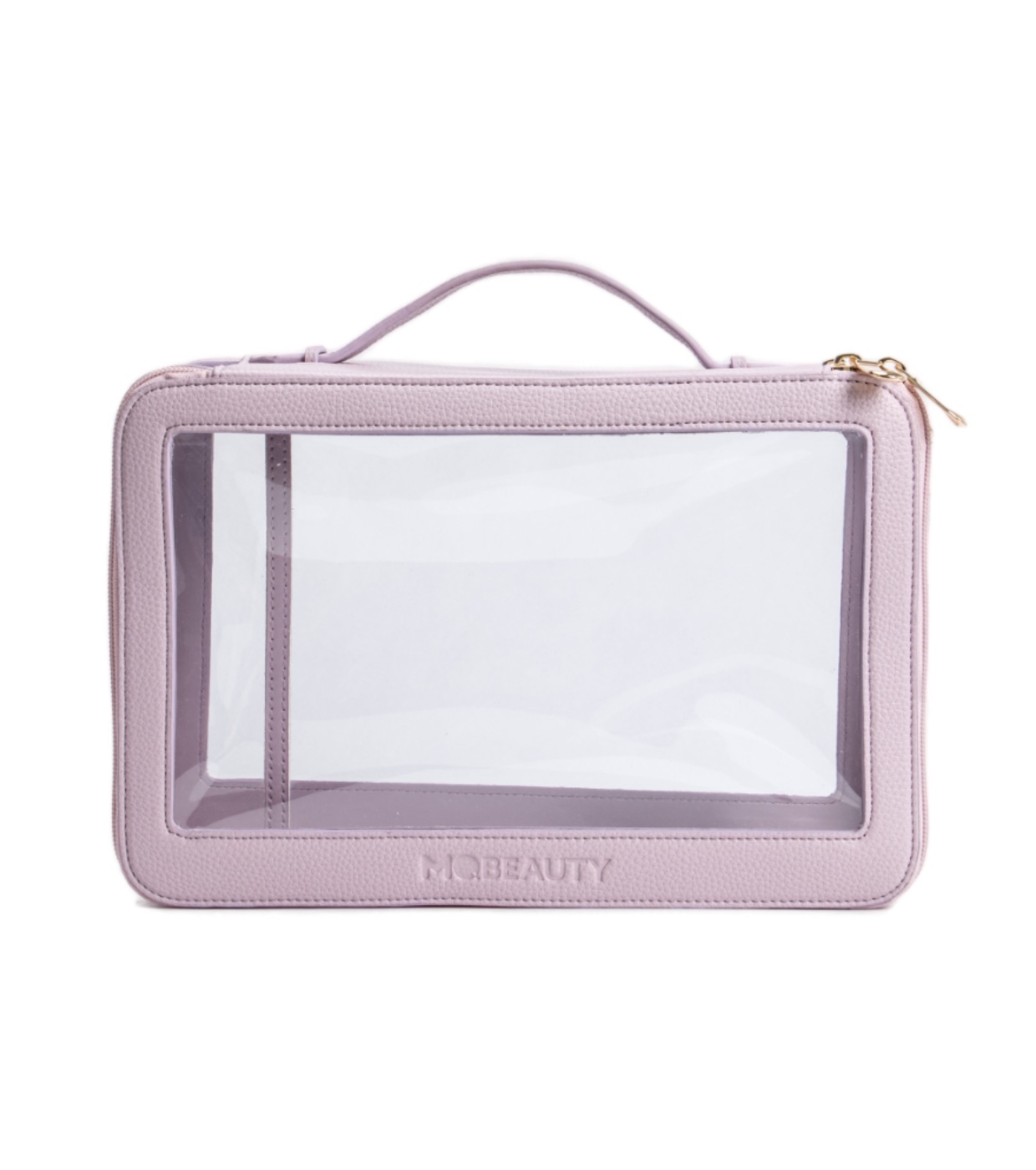 Transparenter Kulturbeutel mit zwei Lavendelfächern von MQBeauty.