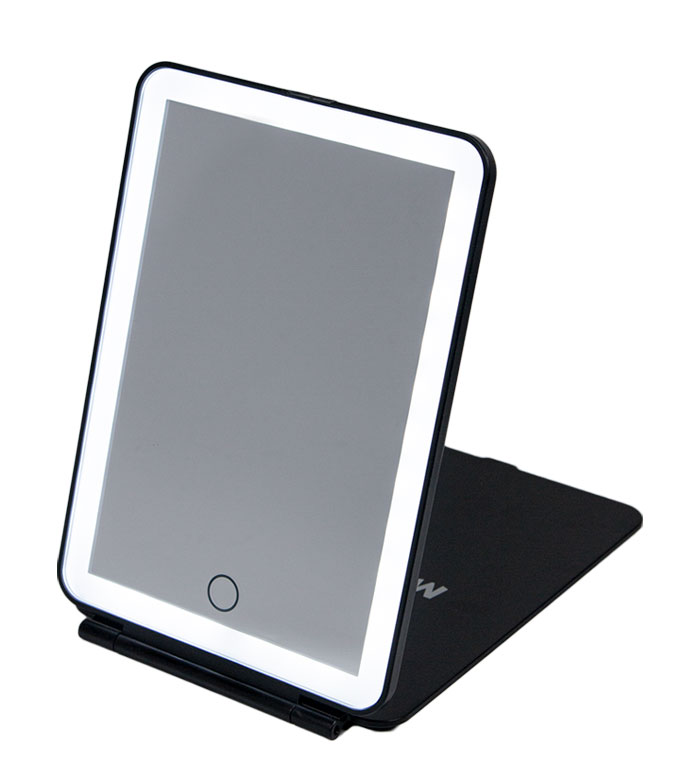 Praktischer klappbarer Reisespiegel mit LED-Licht.