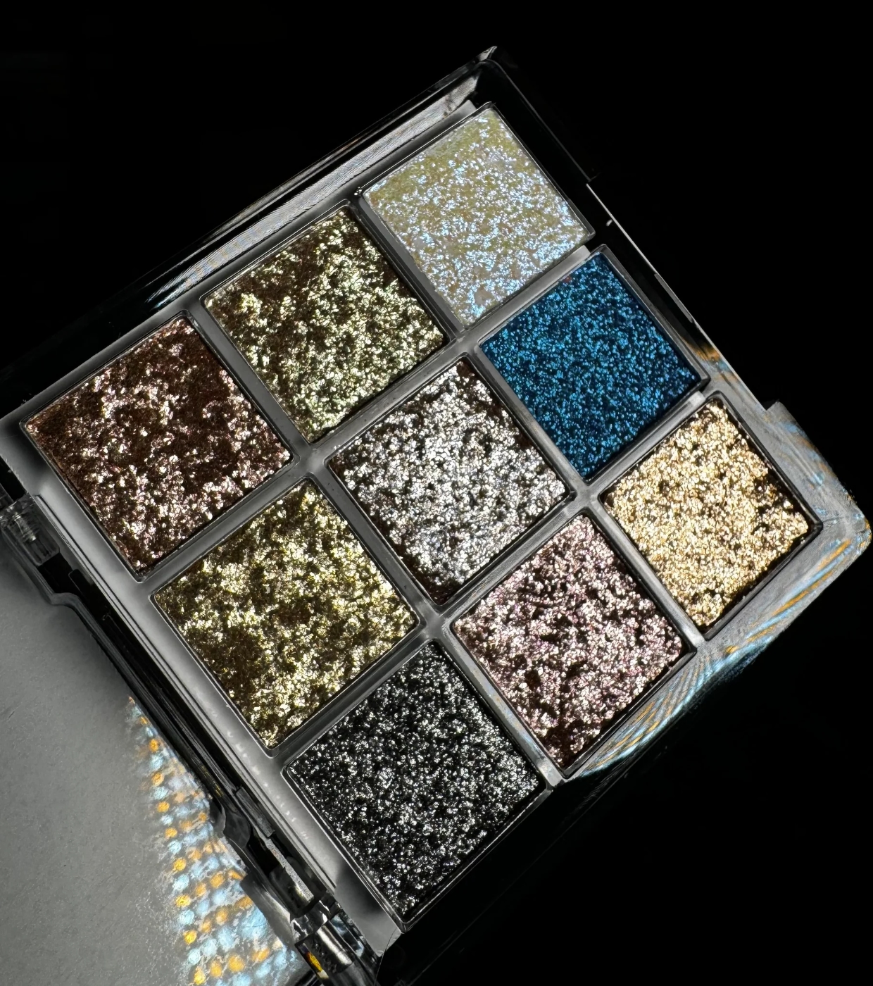 Diese Pigmente eignen sich perfekt zum Erzeugen intensiver, künstlerischer oder hochglänzender Looks und verwandeln Licht in einzigartige Reflexionen, die sich je nach Winkel und Beleuchtung verändern.