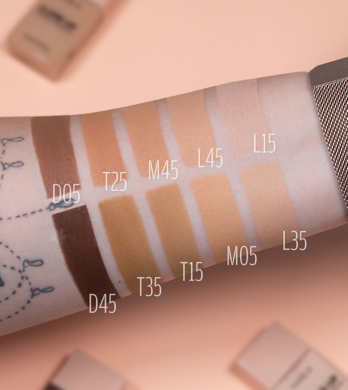 aqua (water), cyclopentasiloxane, dimethicone, peg-10 dimethicone, alcohol, peg-4, hdi/trimethylol hexyllactone crosspolymer, isononyl isononanoate, trimethylsiloxysilicate, dimethicone/vinyl dimethicone crosspolymer, myristyl lactate, disteardimonium hectorite, phenoxyethanol, sodium chloride, benzyl alcohol, synthetic fluorphlogopite, sodium dehydroacetate, aluminum hydroxide, tocopheryl acetate, cetyl dimethicone, disodium edta, sodium lauroyl glutamate, lysine, triethoxycaprylylsilane, magnesium chloride. +/? (may contain): ci 77891 (titanium dioxide), ci 77491 - ci 77492 - ci 77499 (iron oxides).