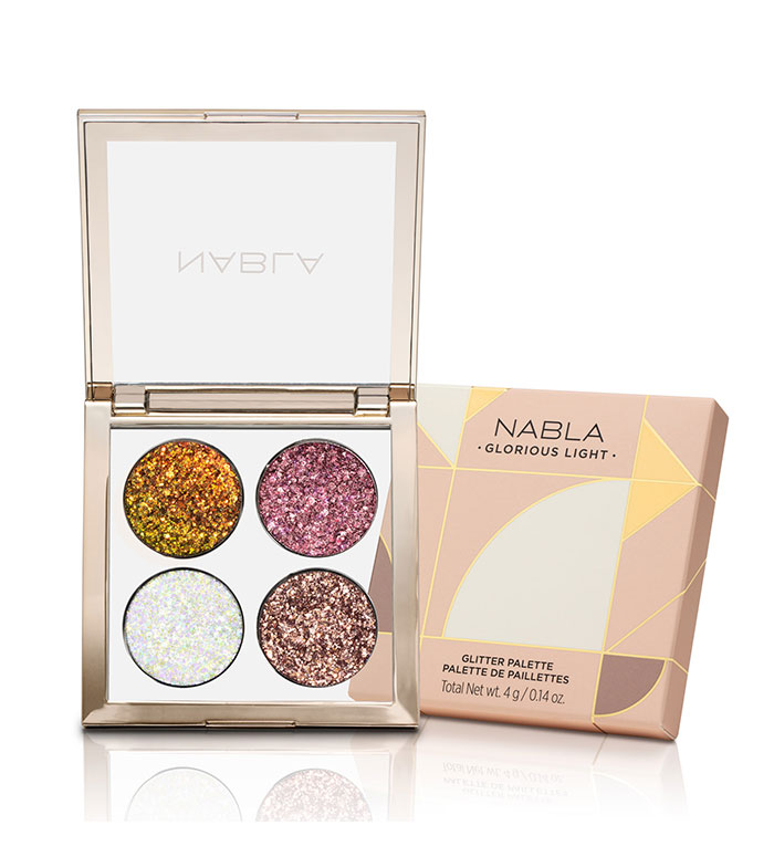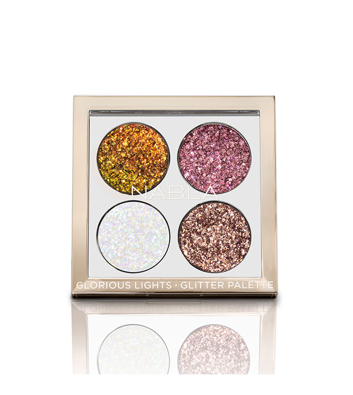 Die Glorious Lights Glitters Palette von Nabla enthält vier Glitzer voller Reflexe für einen brillanten Look.