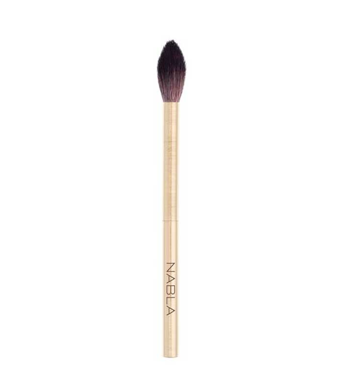 Dank seiner Form ermöglicht dieser Pinsel das kontrollierte und gleichmäßige Auftragen und Verwischen der Produkte.