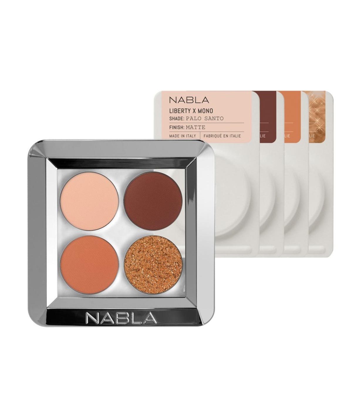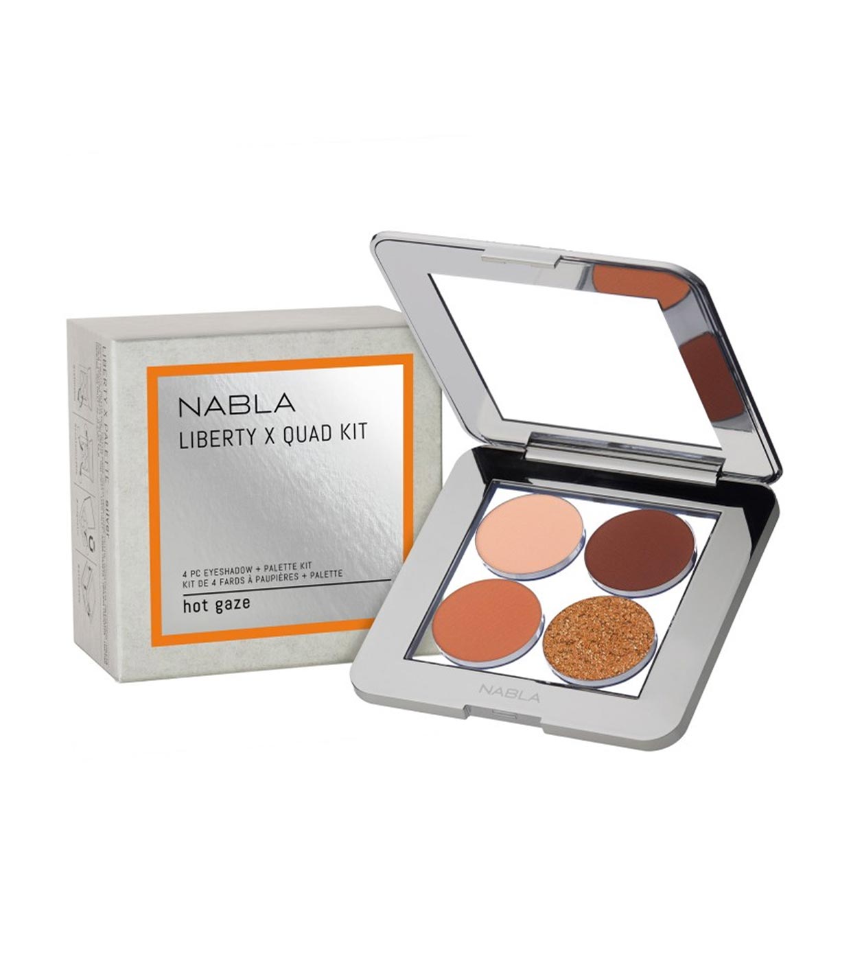 Hot Gaze -Schattenpalette aus der Liberty X -Kollektion von Nabla , eine Palette mit 4 Lidschatten, die perfekt miteinander kombiniert sind, um einen perfekten Look zu erzielen.