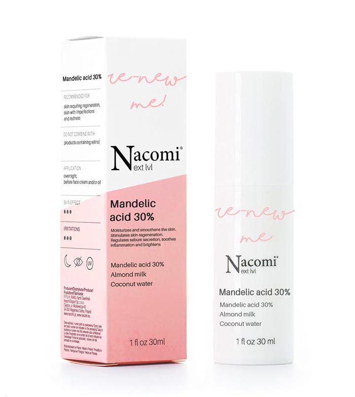 Propanediol, Mandelic Acid, Aqua, Glycerin, Cocos Nucifera Fruit Extract, Macadamia Ternifolia Seed Oil, Prunus Amygdalus Dulcis Seed Extract, Hydrogenated Olive Oil Caprylyl Esters, Hydrogenated Lecithin, Trilaurin, Triheptanoin, Tocopherol, Citric Acid, Sodium Hydroxide, Xanthan Gum, Potassium Sorbate, Sodium Benzoate, Dehydroacetic Acid, Benzyl Alcohol.