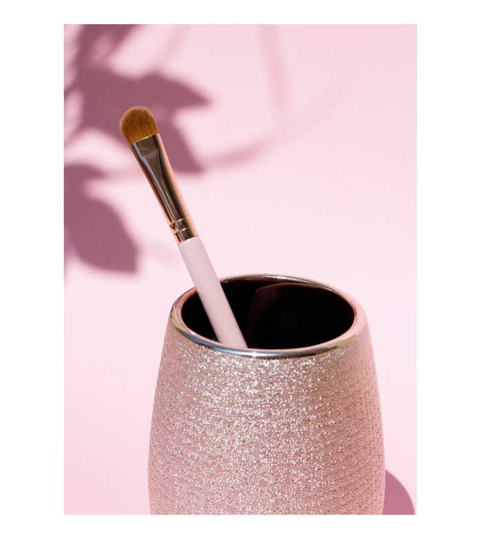 Seine Größe ermöglicht das präzise Auftragen und Verblenden von Cremeprodukten wie Lidschatten und Eyeliner.
