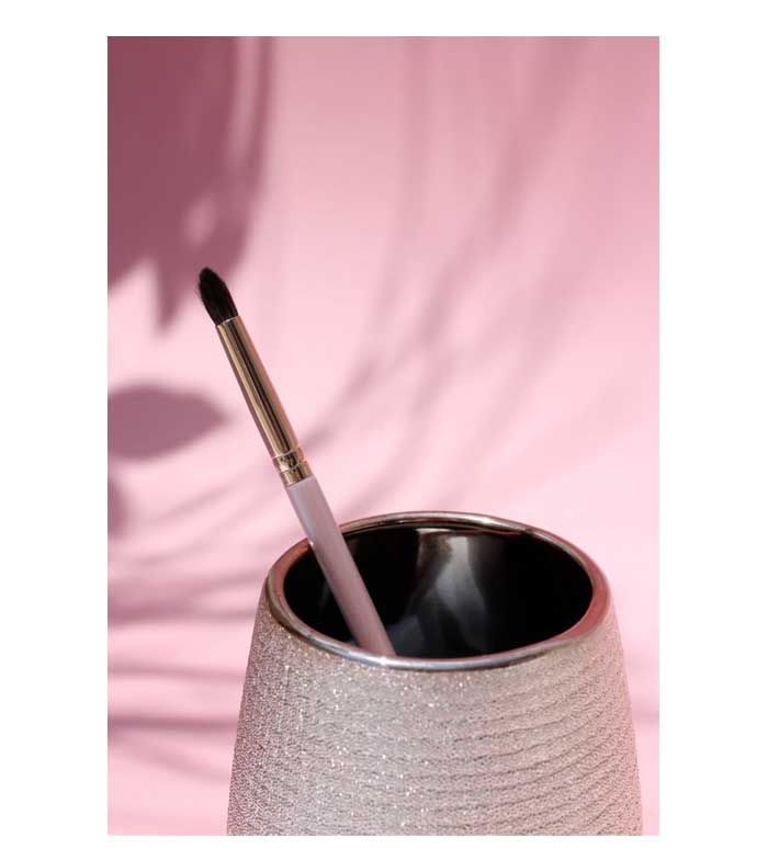 Kleine spitze Bürste, speziell entwickelt für ein feines und komfortables Mischen sowie zum Arbeiten mit kleinen Details und zum Markieren des Tränenkanals.