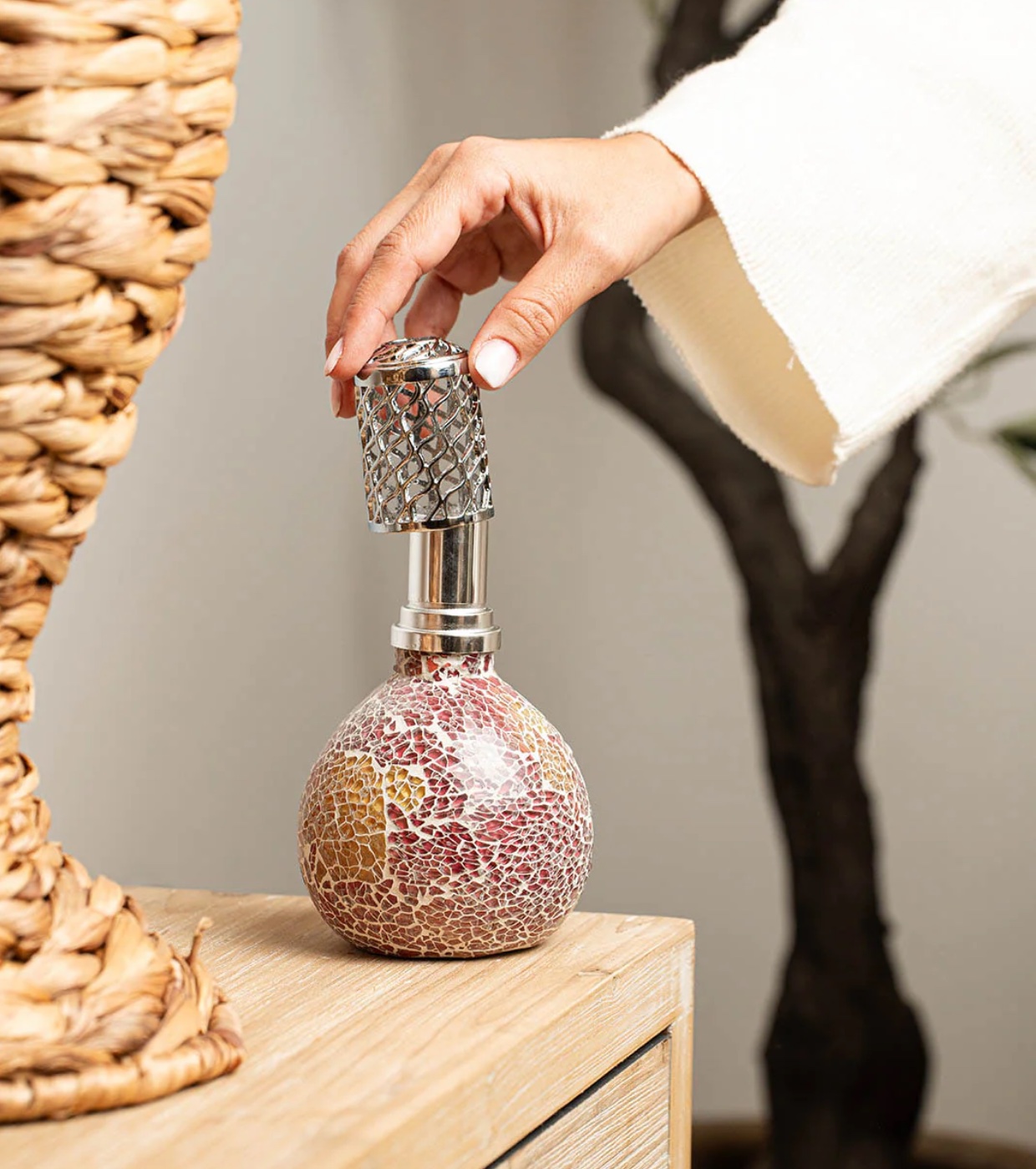 Erwecken Sie die Wärme Ihres Zuhauses mit Amanecer, einer katalytischen Lampe in Rosa- und Gelbtönen von Natta Beauty , inspiriert von den ersten Sonnenstrahlen.