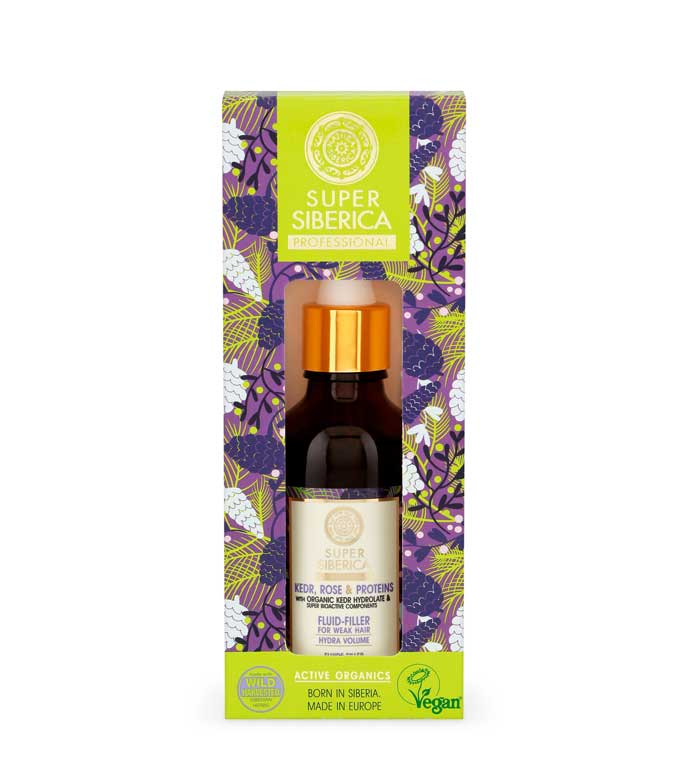 Die Flüssigkeit füllt und verdickt das Haar und bedeckt es von den Wurzeln bis zu den Enden, während es weich und seidig bleibt.
