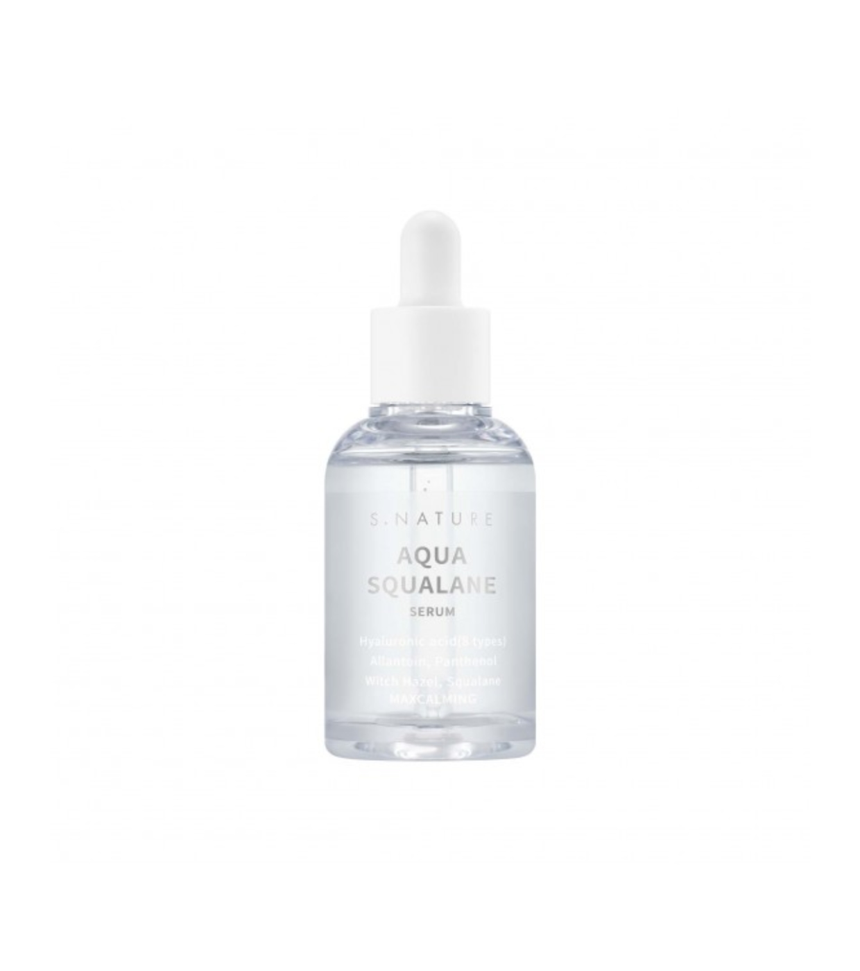 Aqua Squalane Serum von S.NATURE ist ein feuchtigkeitsspendendes Gesichtsserum mit leichter Textur und schneller Absorption. Es wurde entwickelt, um intensive Feuchtigkeit zu spenden, die Elastizität zu verbessern und die Hautbarriere zu stärken, ohne ein fettiges oder klebriges Gefühl zu hinterlassen.