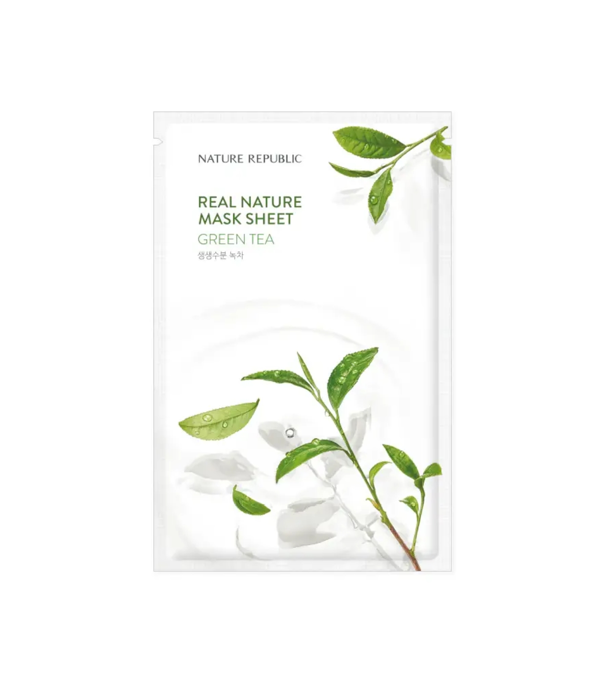 Die Real Nature Green Tea Gesichtsmaske von Nature Republic wurde entwickelt, um die Haut dank ihrer Formel mit natürlichen Inhaltsstoffen zu nähren und zu pflegen.